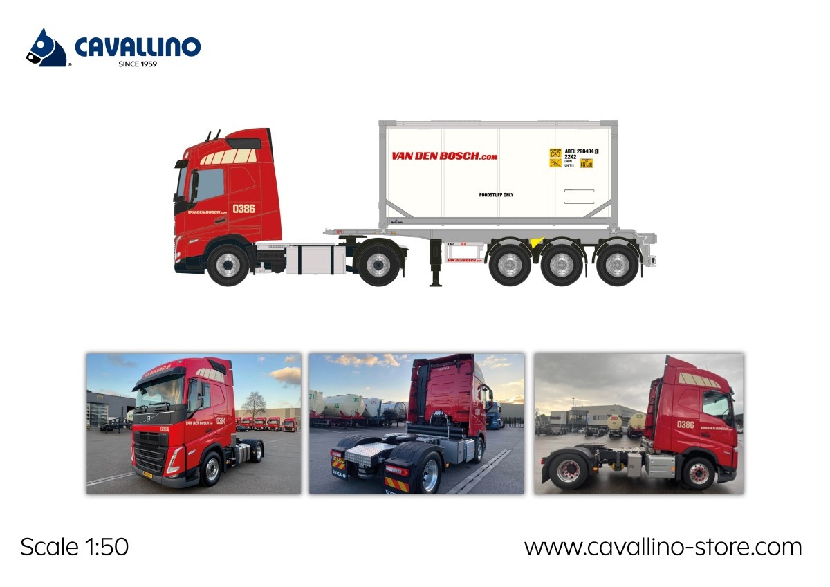 Cavallino Volvo FH5 Globetrotter 4x2 with 3-axle container chassis + tankcontainer VAN DEN BOSCH