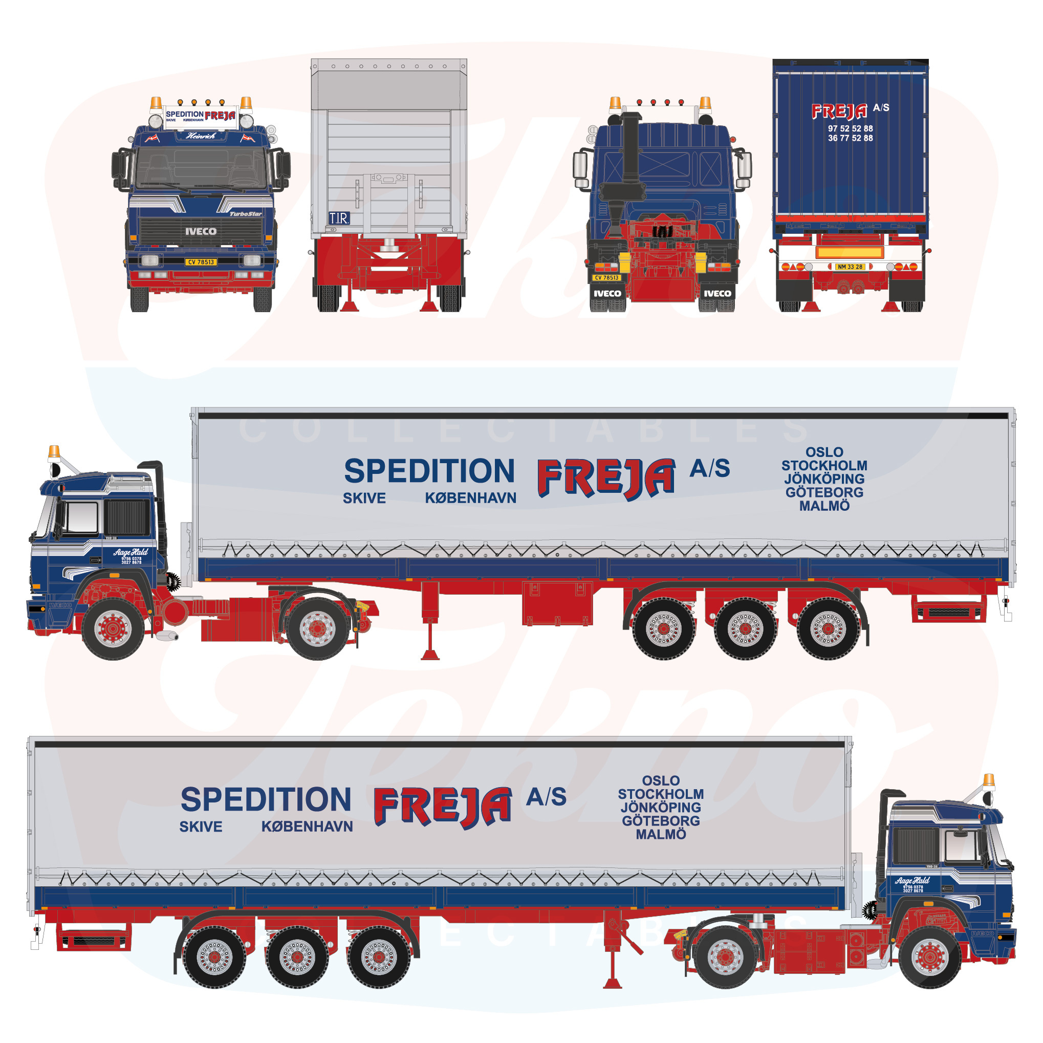Review Tekno Iveco Turbostar with 3-axle tilt trailer FREJA AAGE HALD