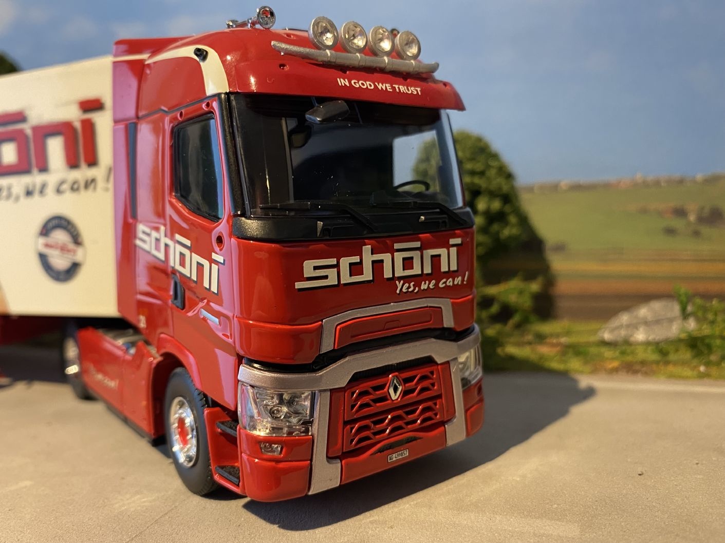Review Tekno Renault T High with 3-axle reefer trailer Schoni