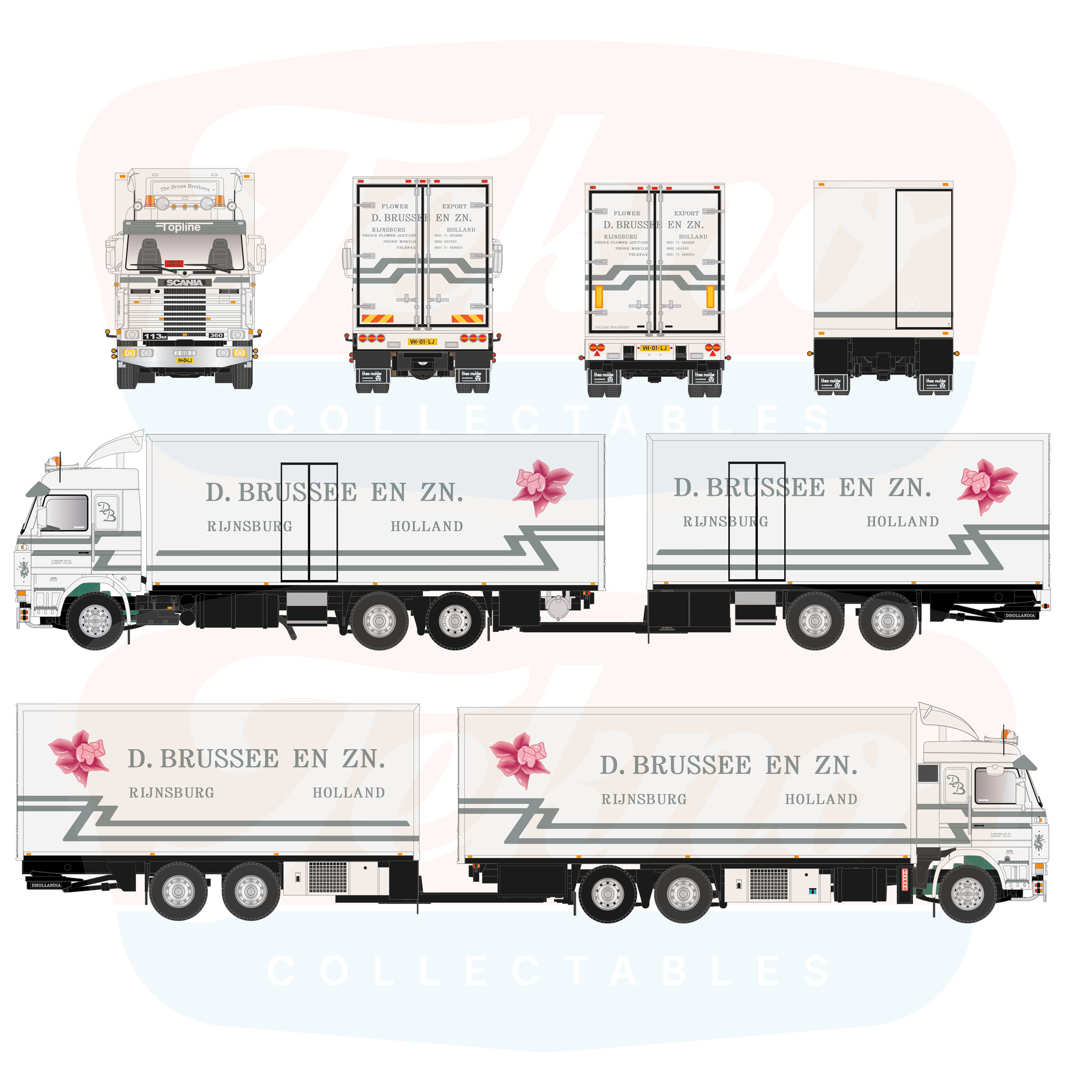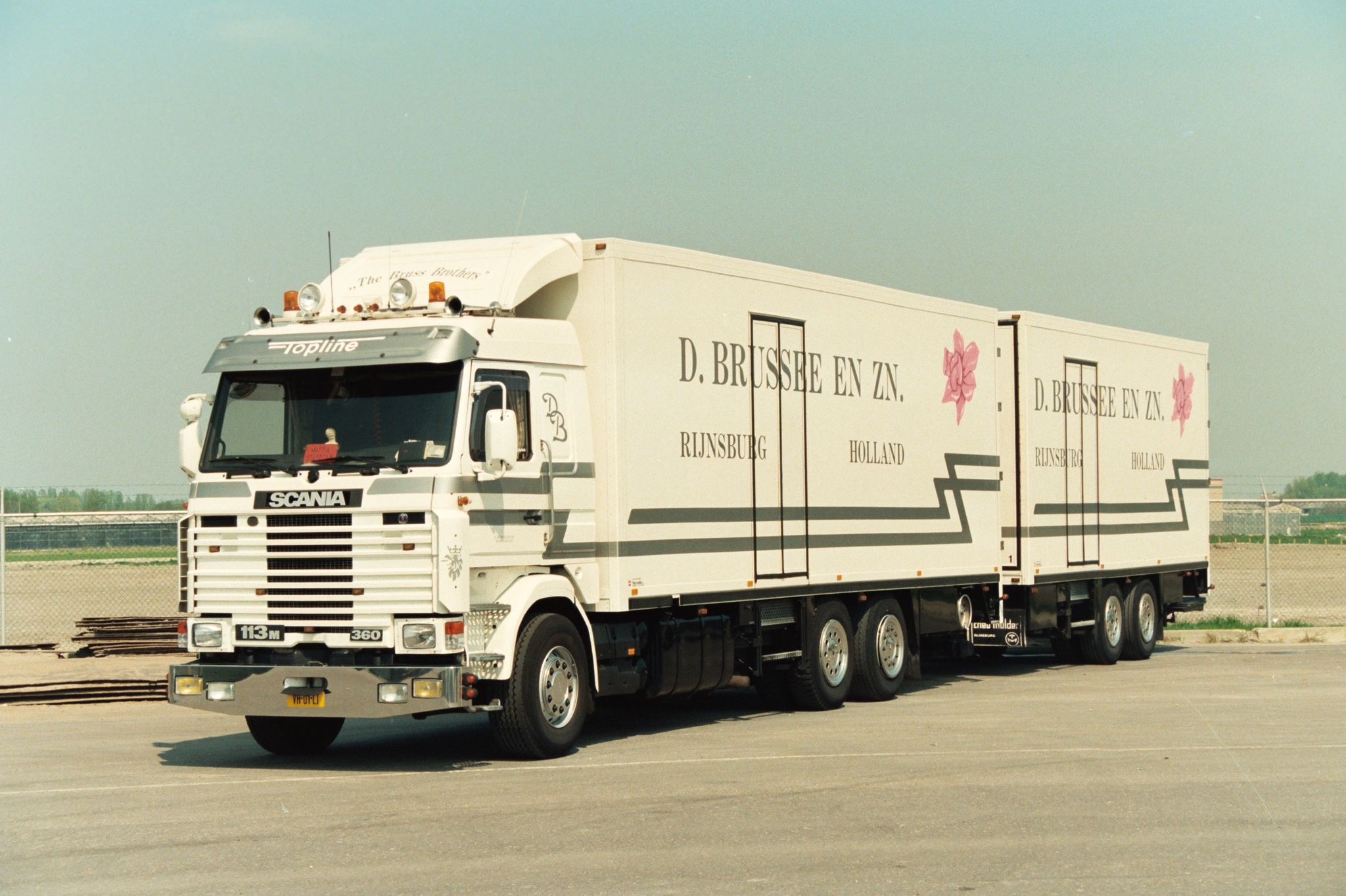 Review Tekno Scania 113M 6x2 riged truck with 2-axle trailer D. BRUSSEE EN ZN.