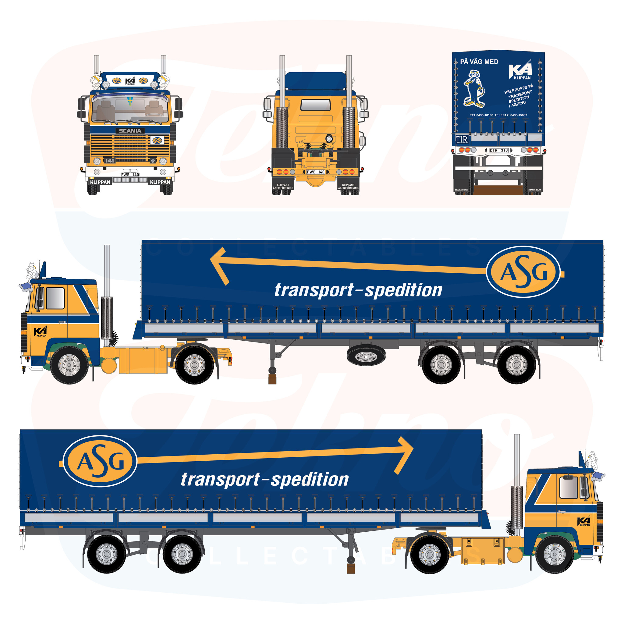 Review Tekno Scania 141 4x2 with 2-axle tilt trailer ASG KLIPPAN