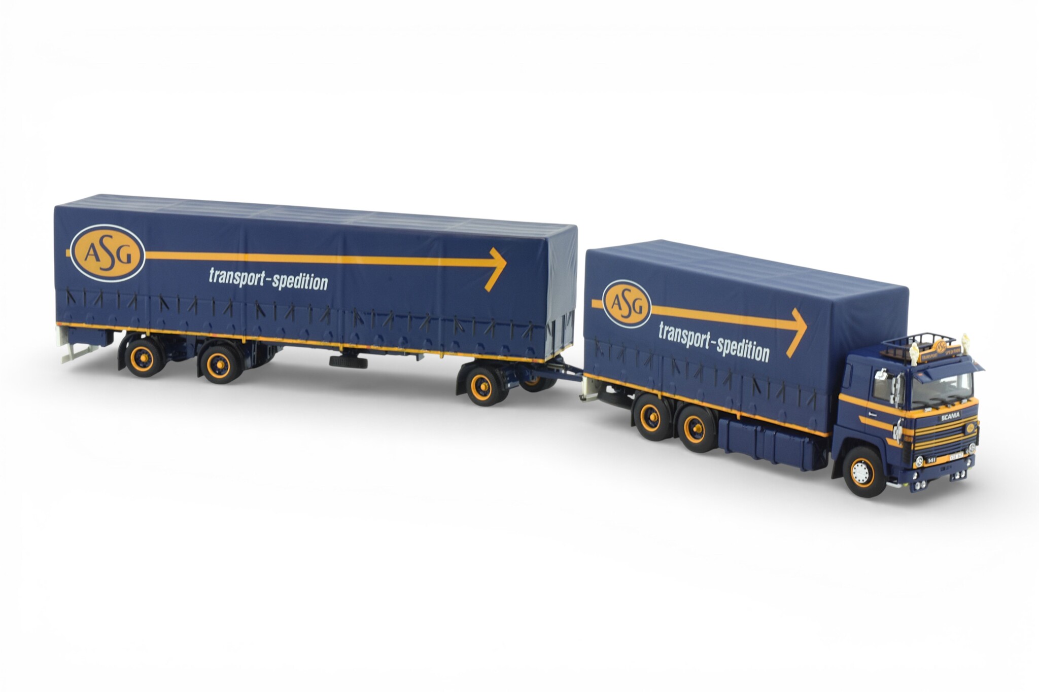 Review Tekno Scania 141 riged truck wit 2-axle Swedish (resin) trailer - Packed in luxury ASG giftbox ASG - SIGURDSSON