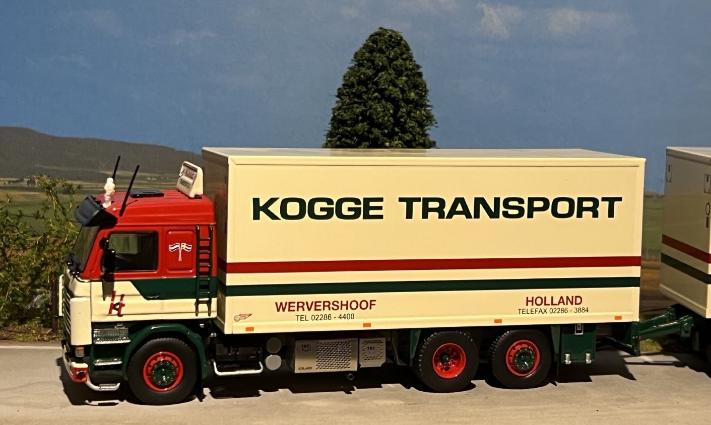 Review Tekno Scania 143M rigid truck with 2-axle trailer KOGGE TRANSPORT