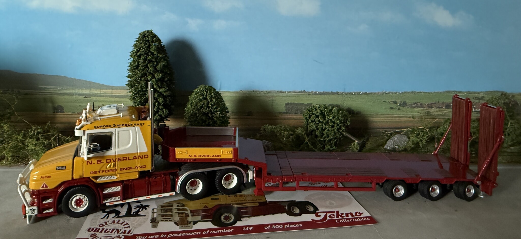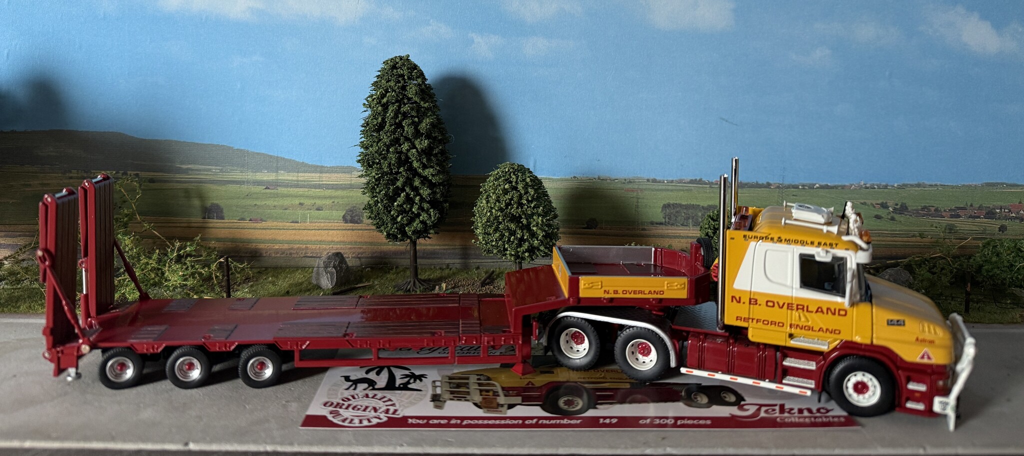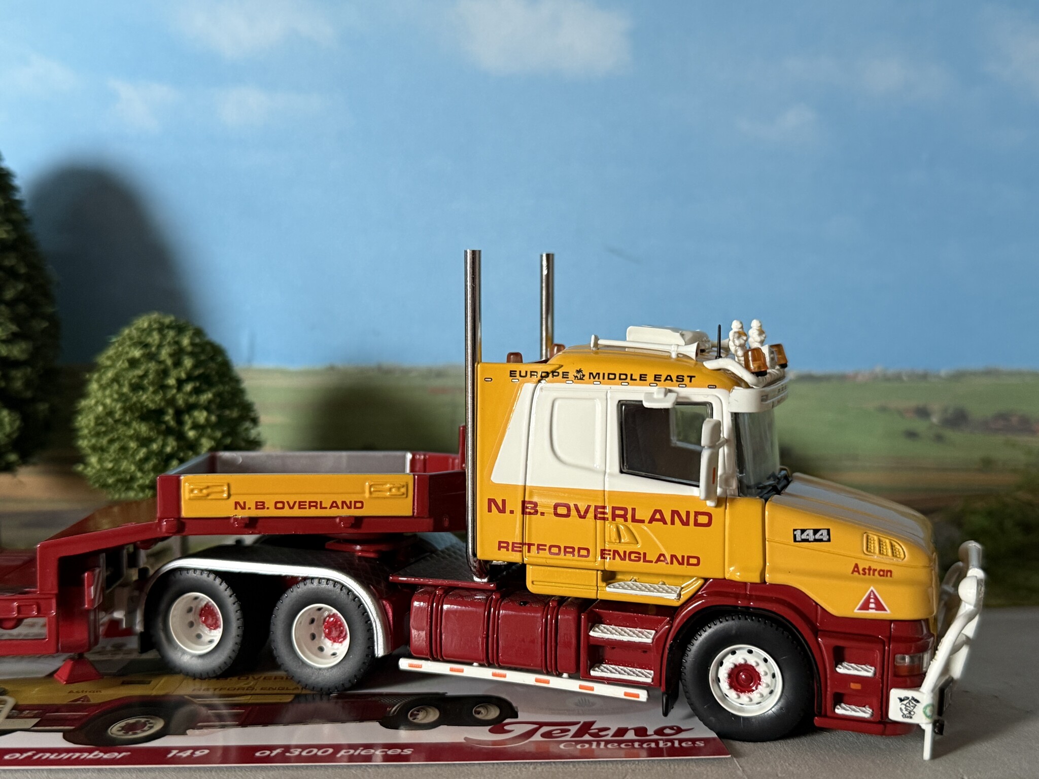 Review Tekno Scania 4-serie Torpedo with 3-axle lowloader OVERLAND