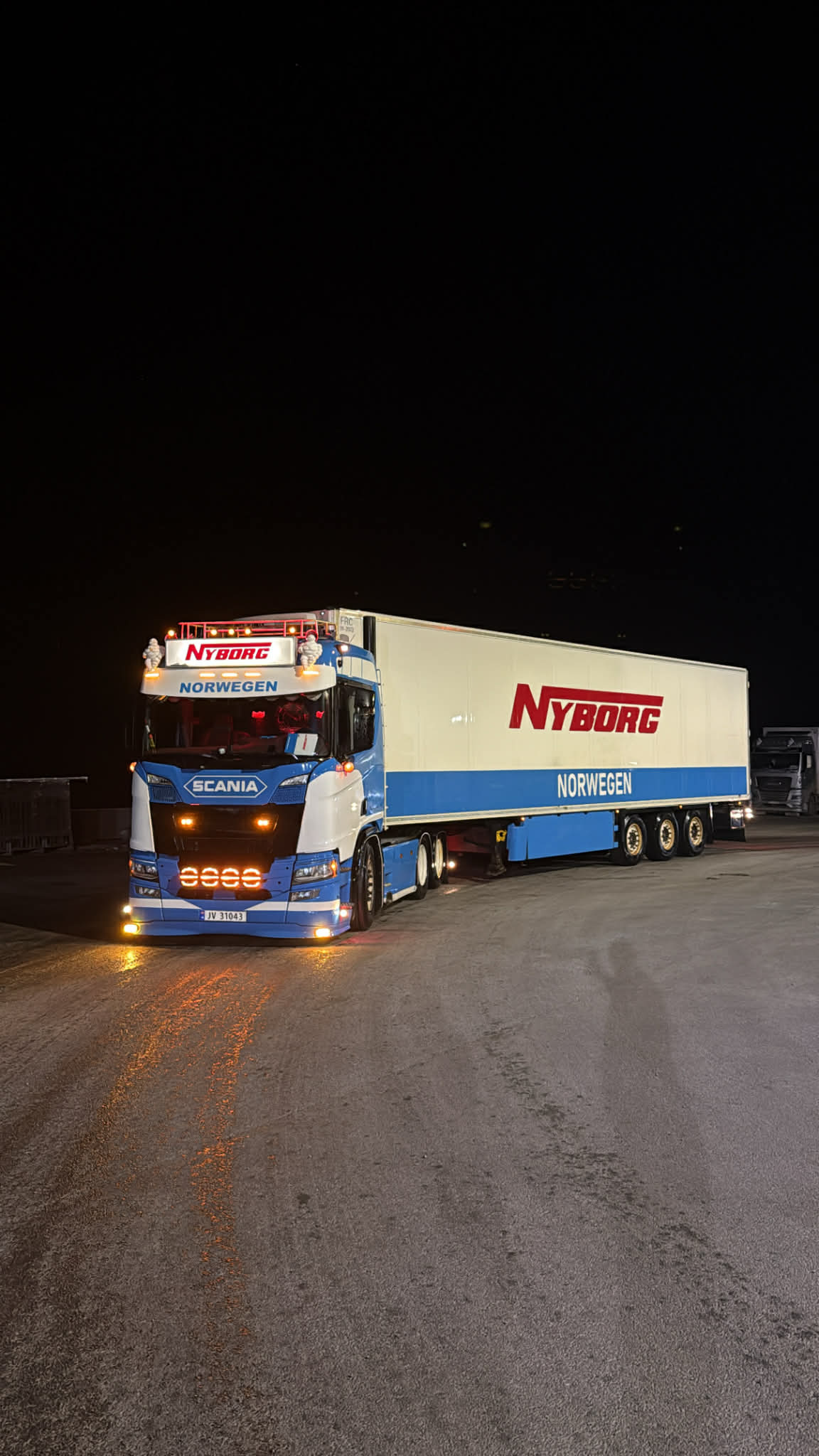 Review Tekno Scania NGR Normal with 3-axle reefer trailer NYBORG