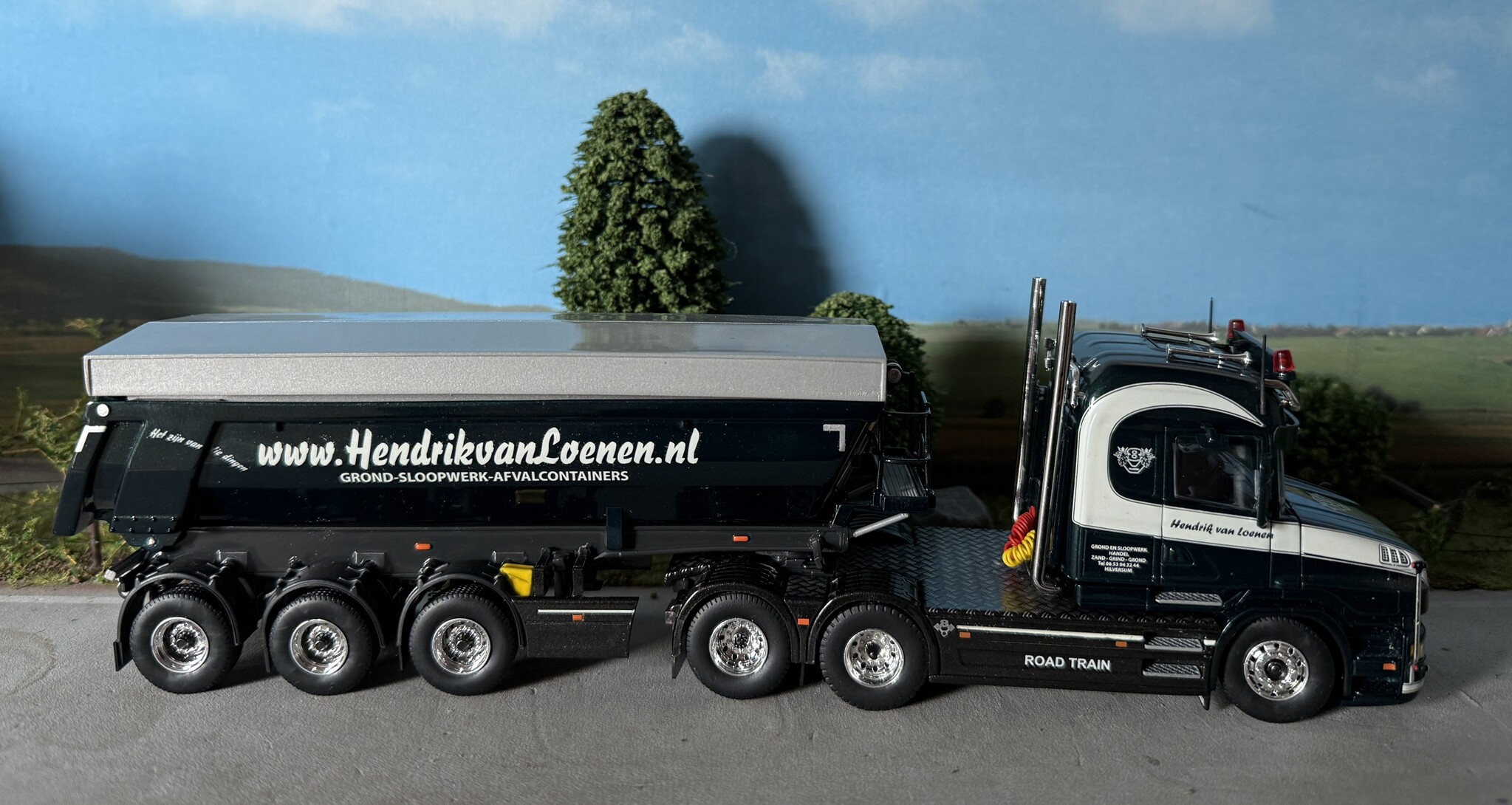 Review Tekno Scania Torpedo Highline with 3-axle tipper trailer HENRIK VAN LOENEN