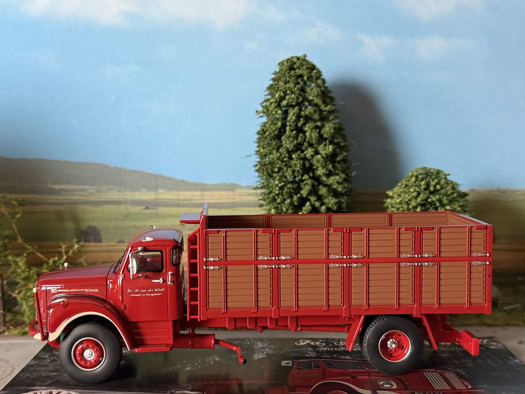 Review Tekno Scania Vabis L80 torpedo riged truck with resin open top container VAN DER WINDT