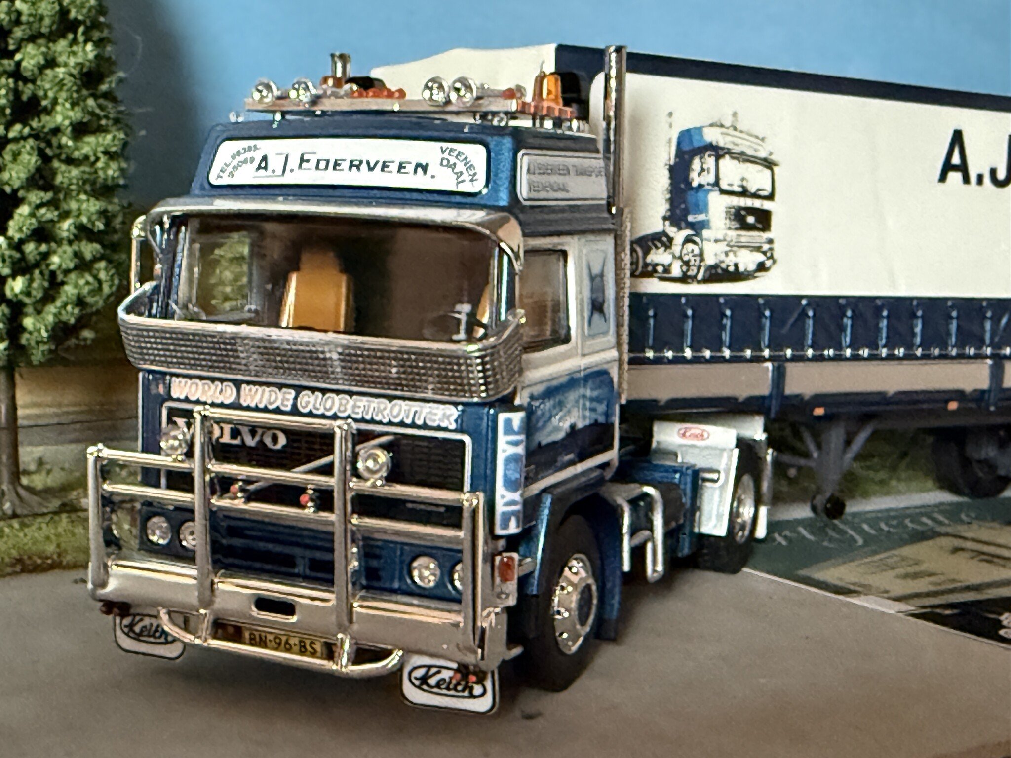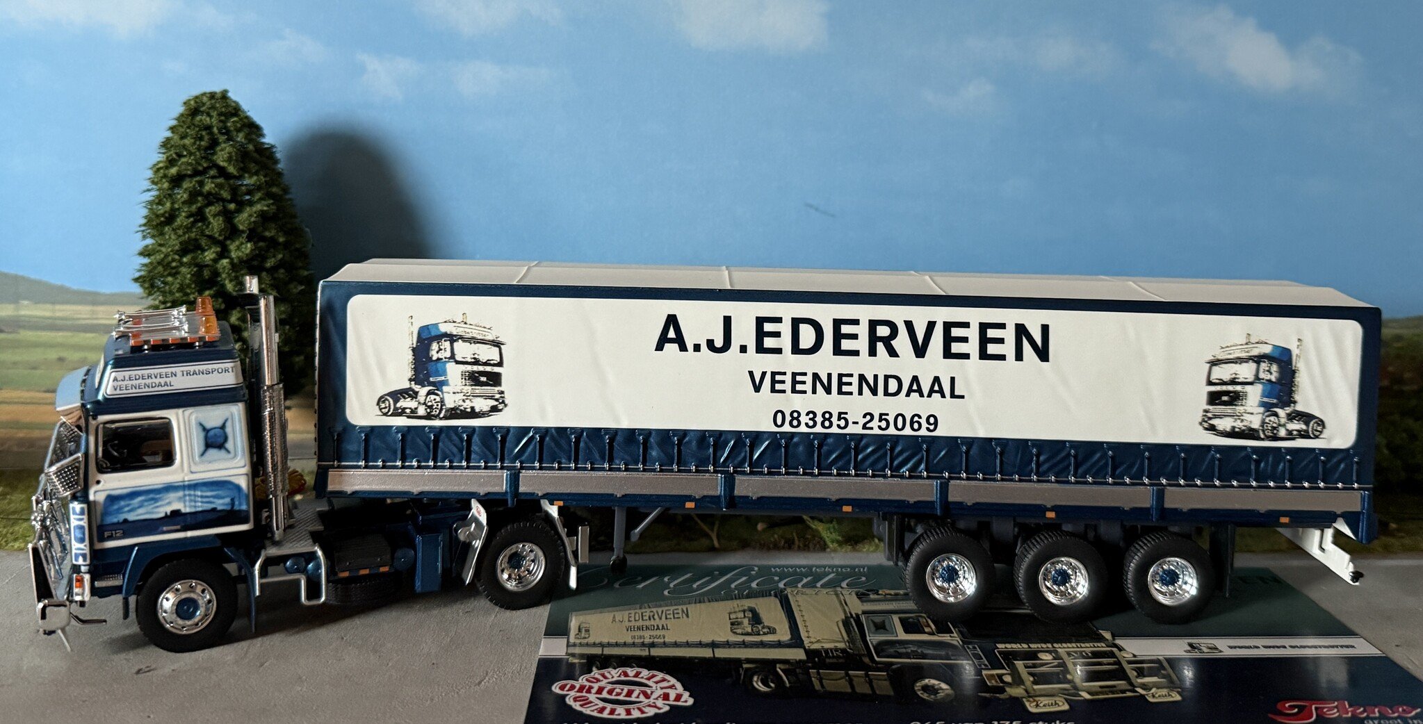 Review Tekno Volvo F12 Globetrotter 4x2 with 3-axle classic tilt trailer EDERVEEN