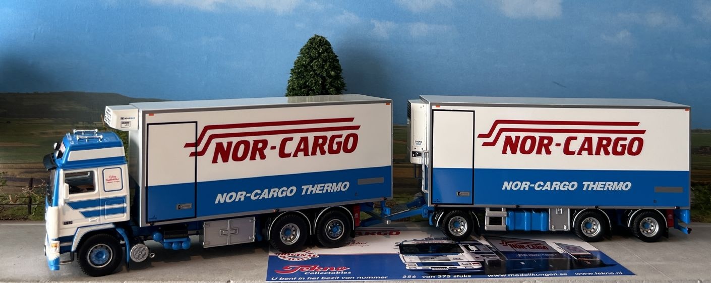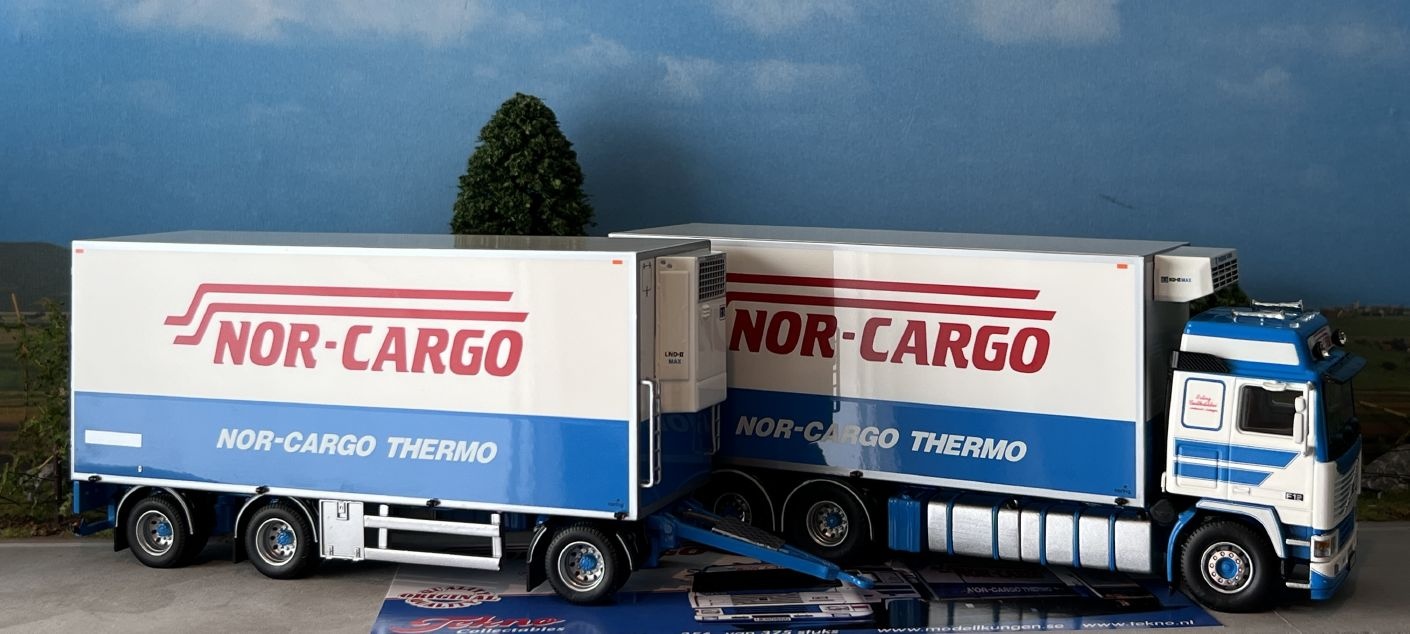 Review Tekno Volvo F12 rigid truck with 3-axle reefer trailer NOR-CARGO