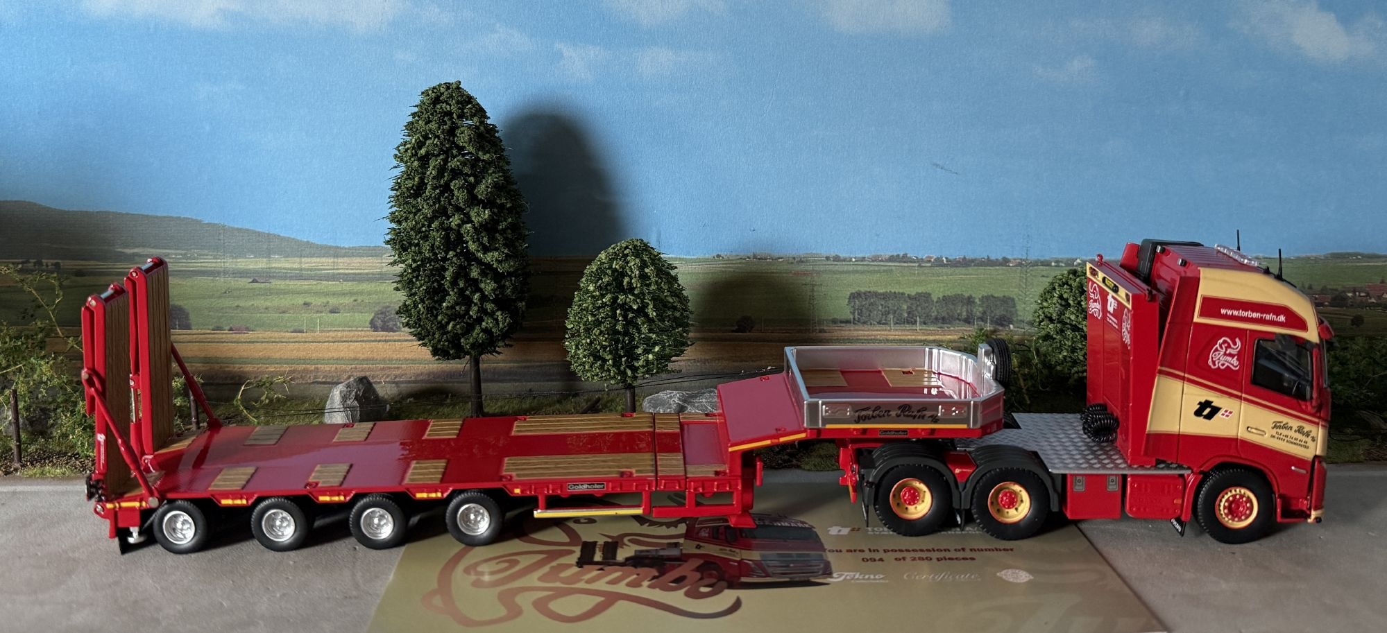 Review Tekno Volvo FH05 Globetrotter XL 6x4 with 4-axle Goldhofer lowloader TORBEN RAFN