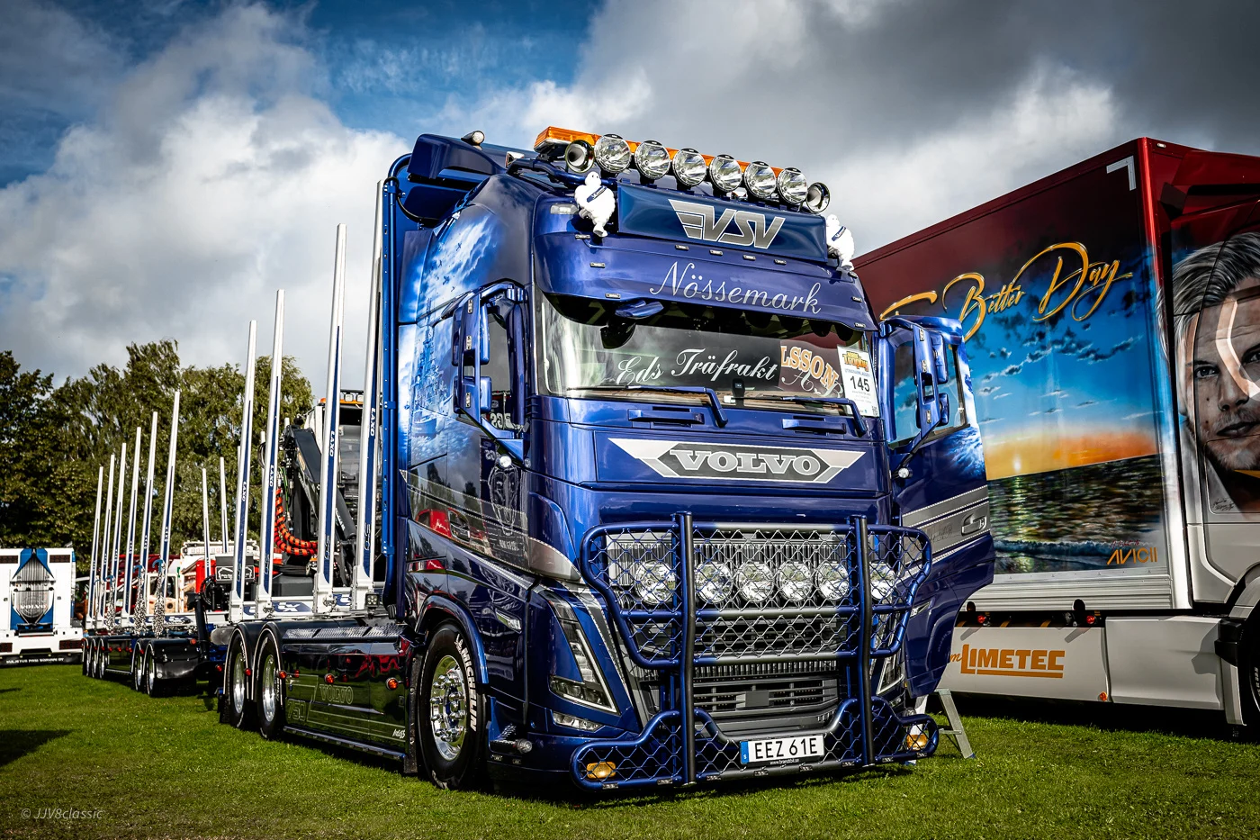 Volvo FH16 Globetrotter XL rigid truck with wood trailer