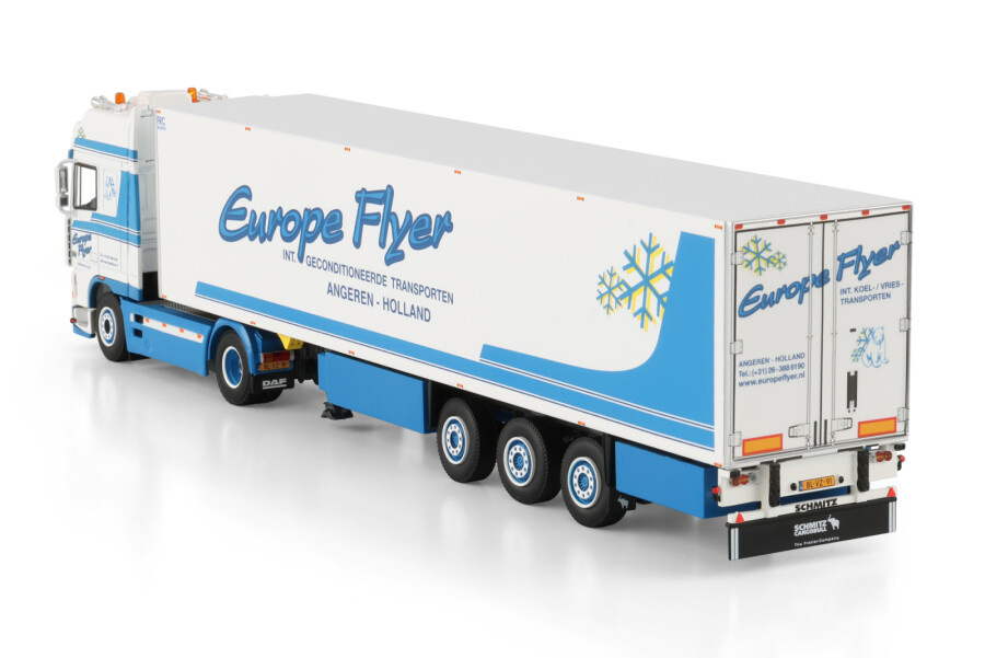 Review WSI DAF 95XF Super Space Cab 4x2 with 3-axle reefer trailer EUROPE FLYER