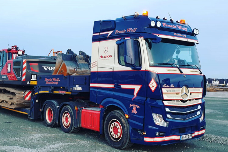 Review WSI Mercedes Actros MP4 Big Space 6x2 low loader Frank Wulf