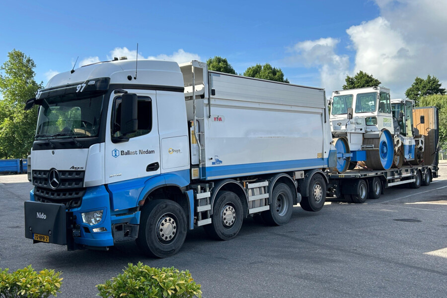 WSI Mercedes Arocs MP4 Stream Space tipper truck 8x2 + 4-axle drawbar lowloader trailer BALLAST NEDAM
