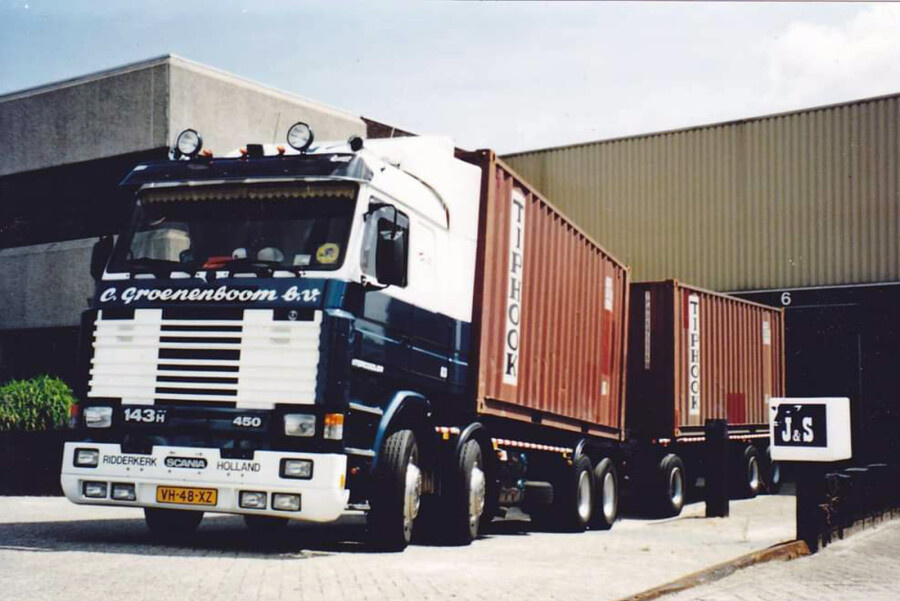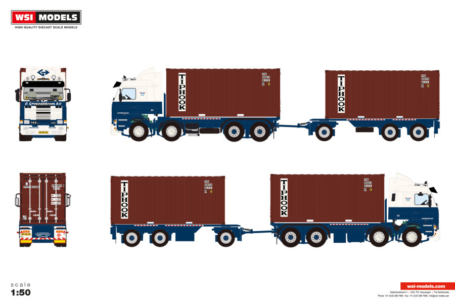 WSI Scania 3-serie 8x2 with 7-axle combi container frame truck + 2x 20ft container C. GROENENBOOM