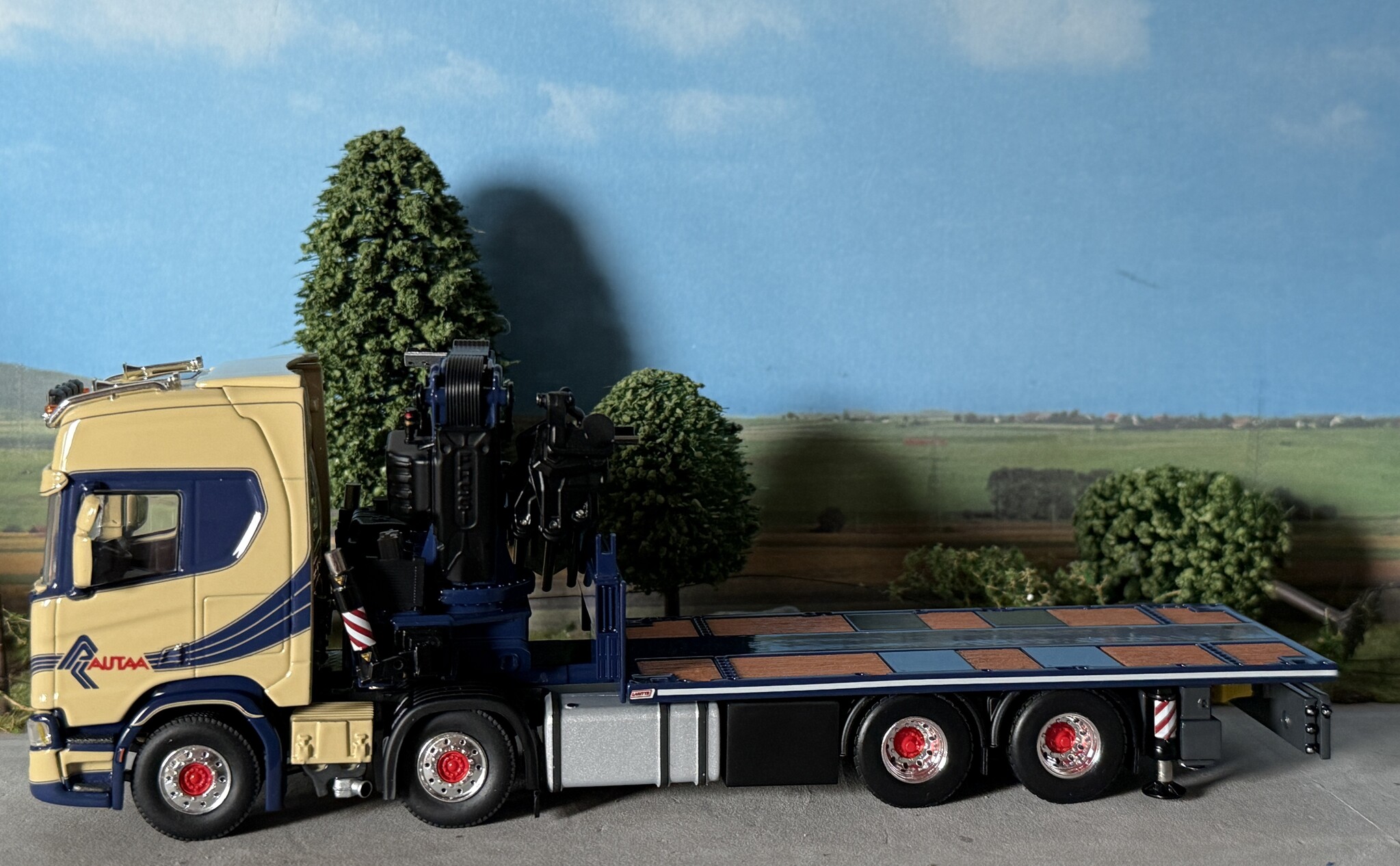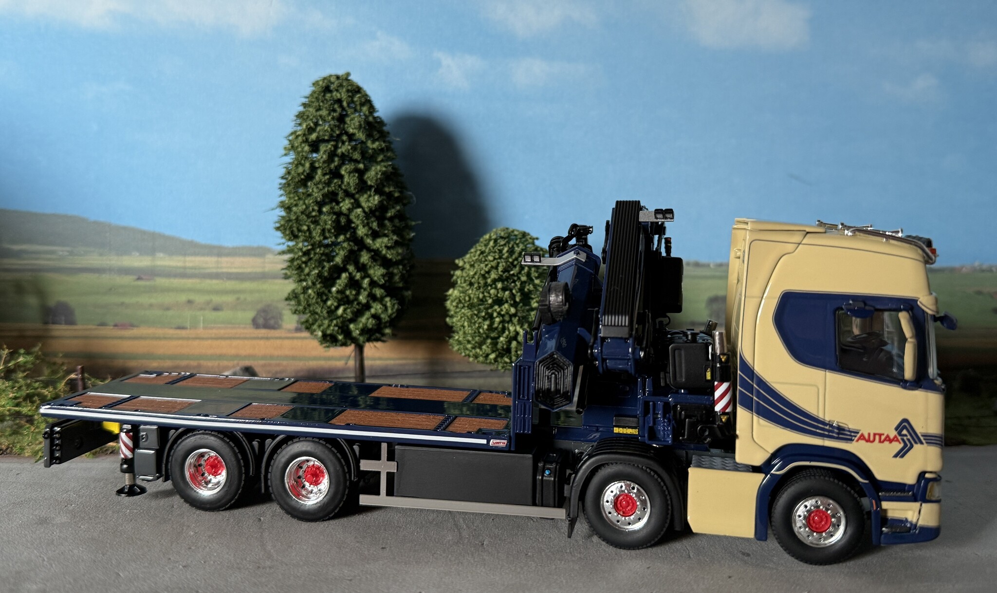 Review WSI Scania R Highline riged flatbed truck 8x4 with fassi 1100 + jib AUTAA