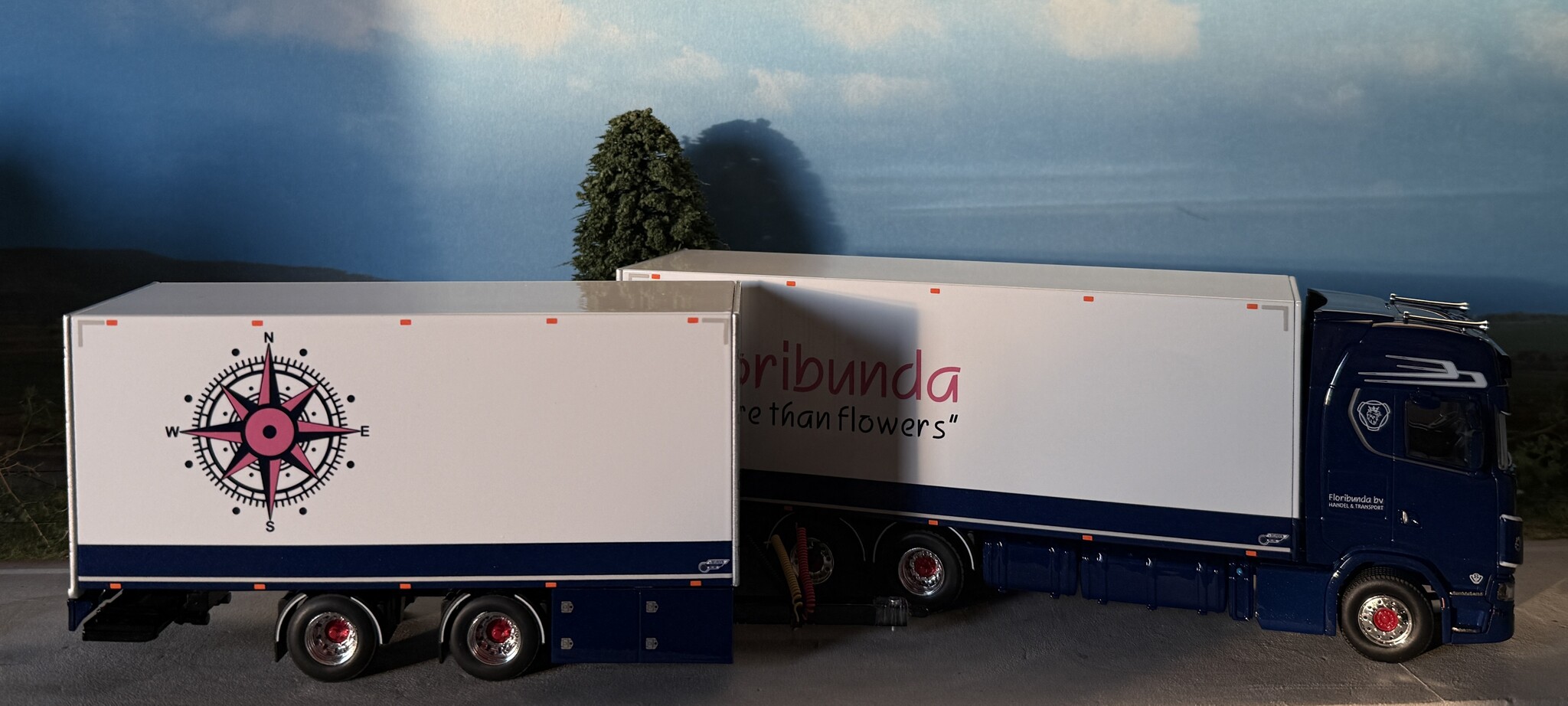 Review WSI Scania S Highline riged reefer truck 6x2 with 2-axle reefer trailer FLORIBUNDA