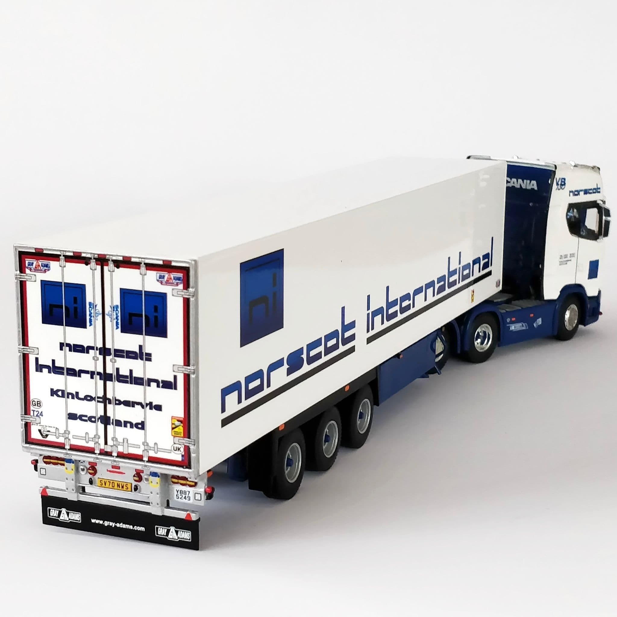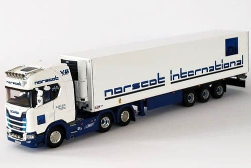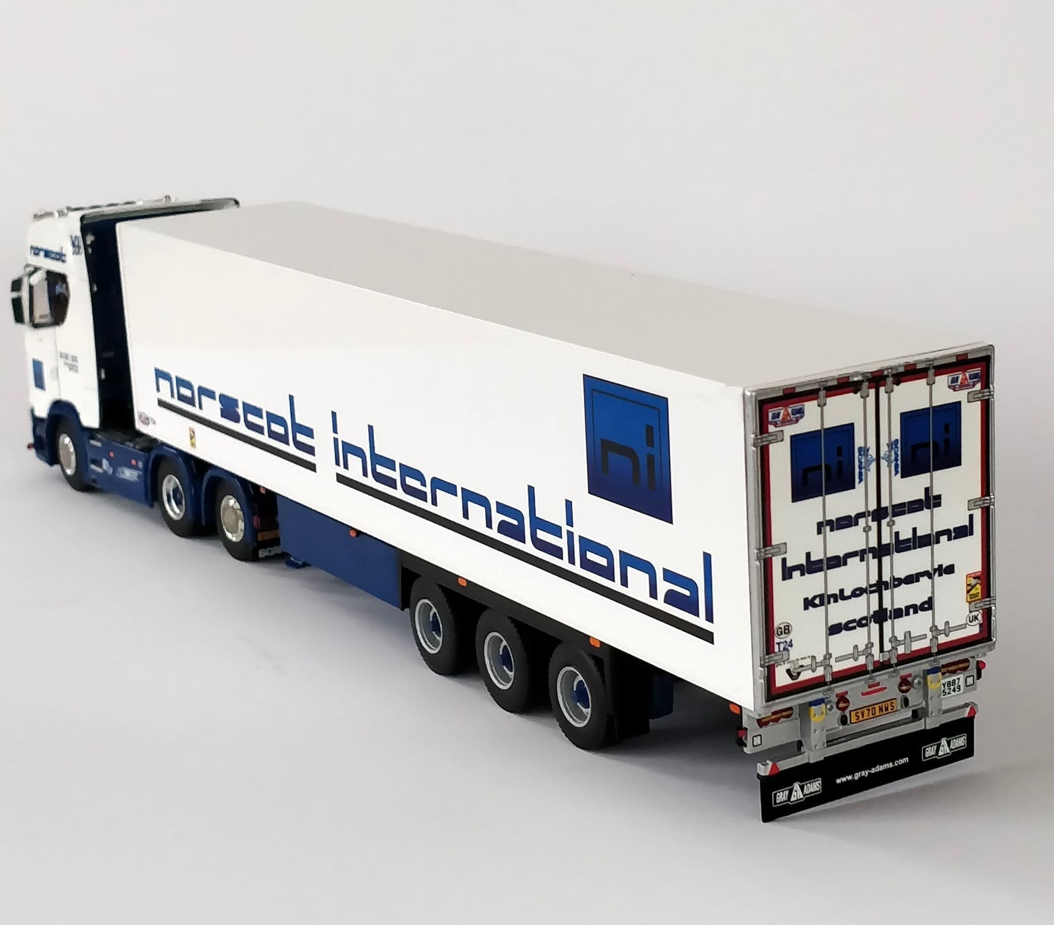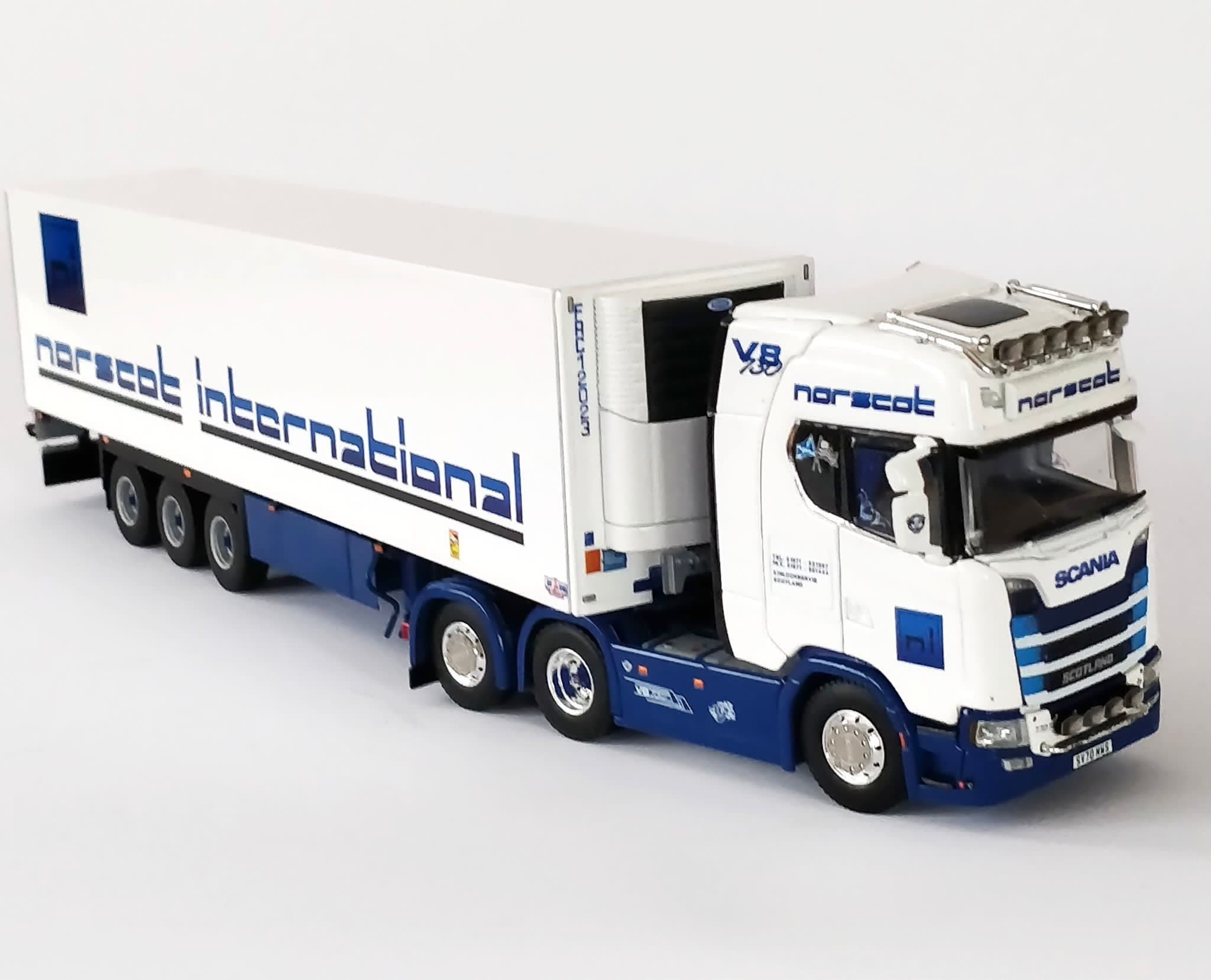 Die cast metal 1: 50th Scale model of a Daf CF Space cab 6 x 2 with 3 axle flatbed trailer in the Livery of Tennant Transport Forth Scotland.