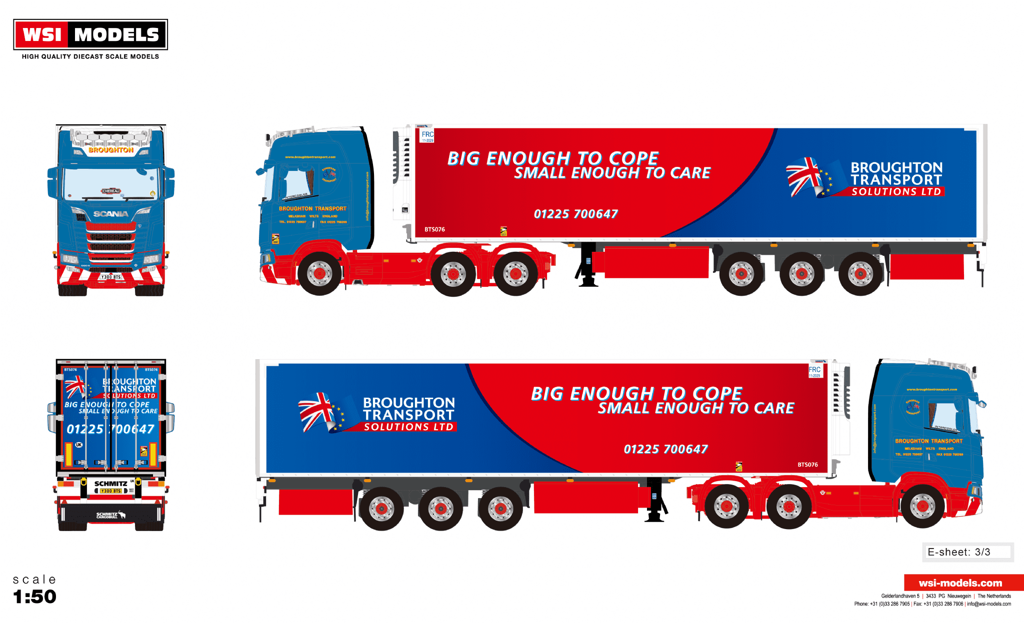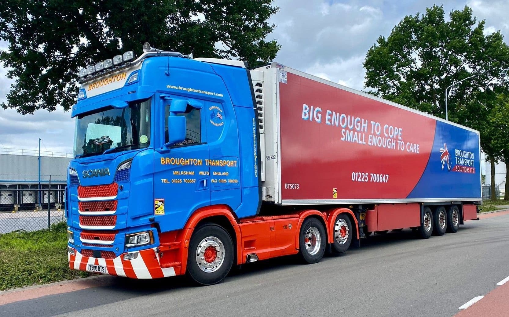 Review WSI Scania S770 6x2 with 3-axle reefer trailer BROUGHTON TRANSPORT ENGLAND