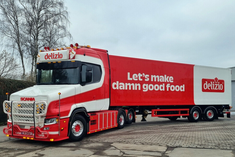 WSI Scania Vlastuin S Torpedo highline facelift 6x2 with 2-axle box trailer STOFFELTRANS DELIZIO