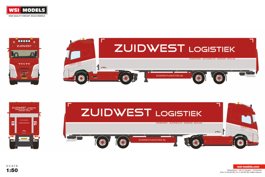 Review WSI Volvo FH Aero Globetrotter XL 4x2 with 2-axle tridec box trailer ZUIDWEST LOGISTIEK