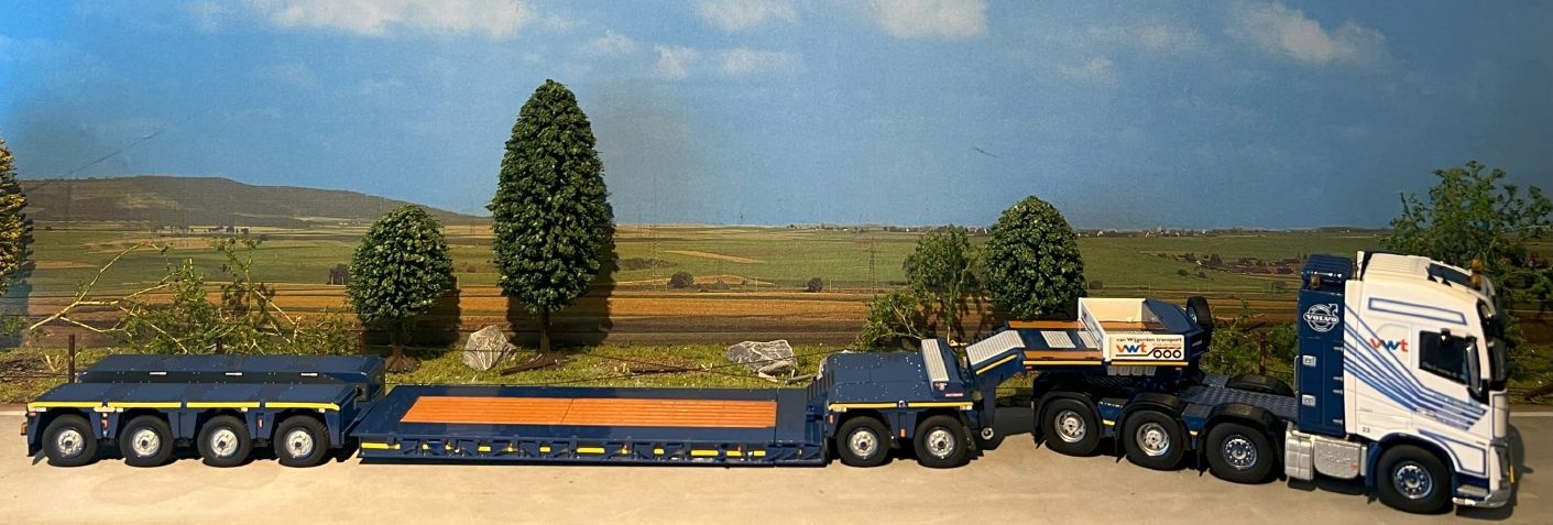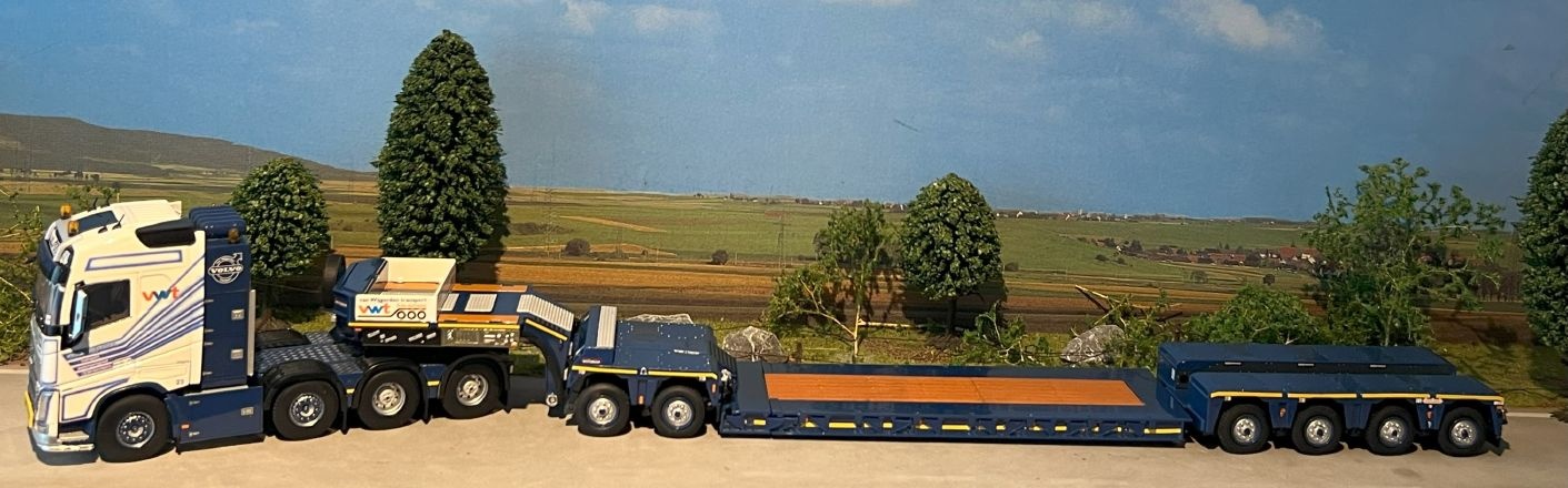 Review WSI Volvo FH4 Globetrotter 8x4 with 4-axle lowloader + 2-axle dolly van Wijgerden