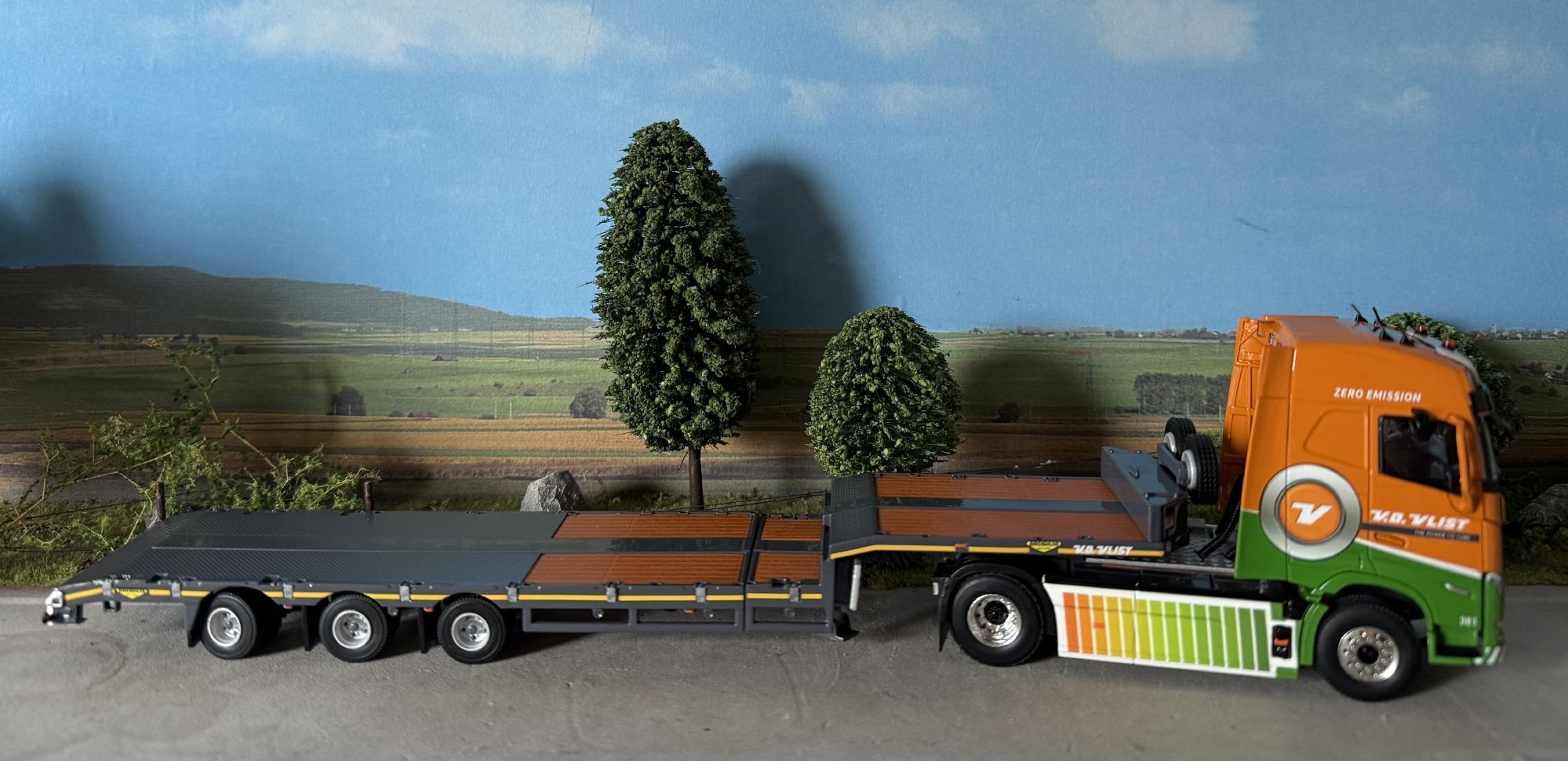Review WSI Volvo FH5 Globetrotter electric 4x2 with 3-axle semi lowloader VAN DER VLIST