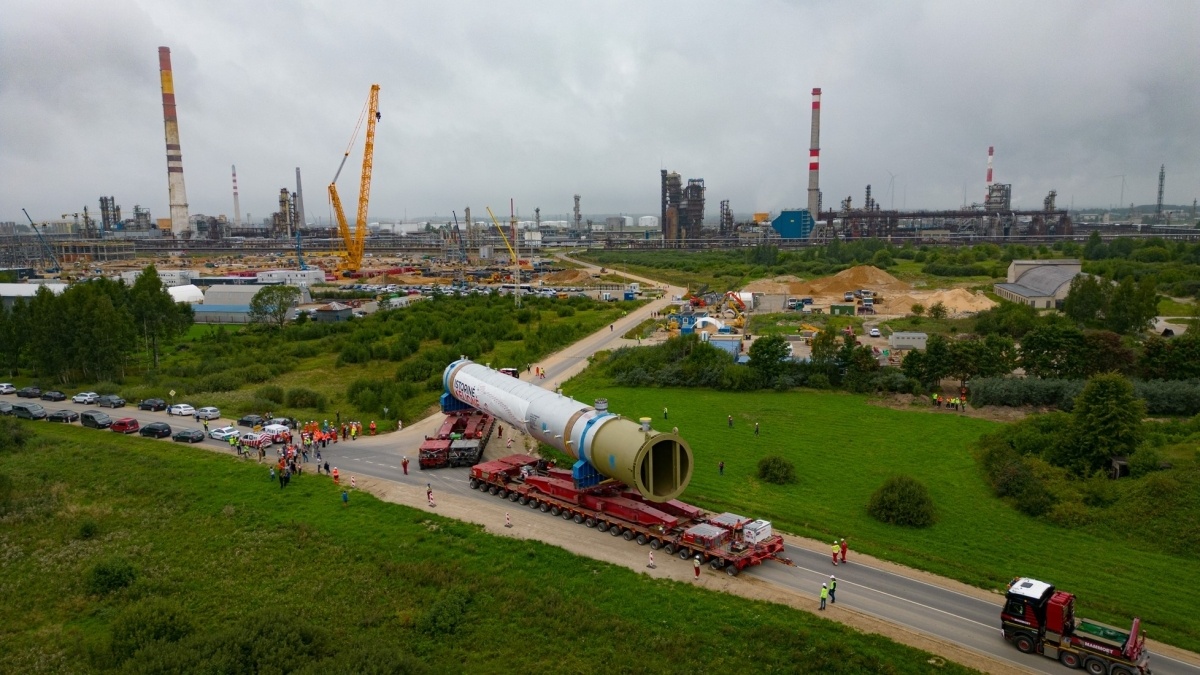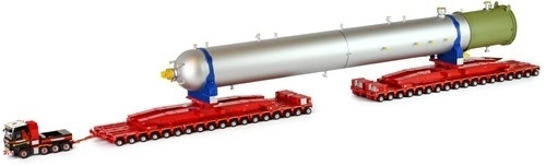 De totale lengte (incl. de Mammoet reactor load) van het hele transport is 150 cm