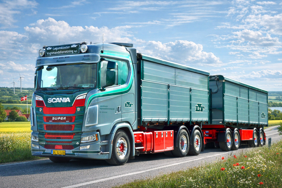 Scania S Highline 6x2 with 2-axle trailer and 2-axle dolly