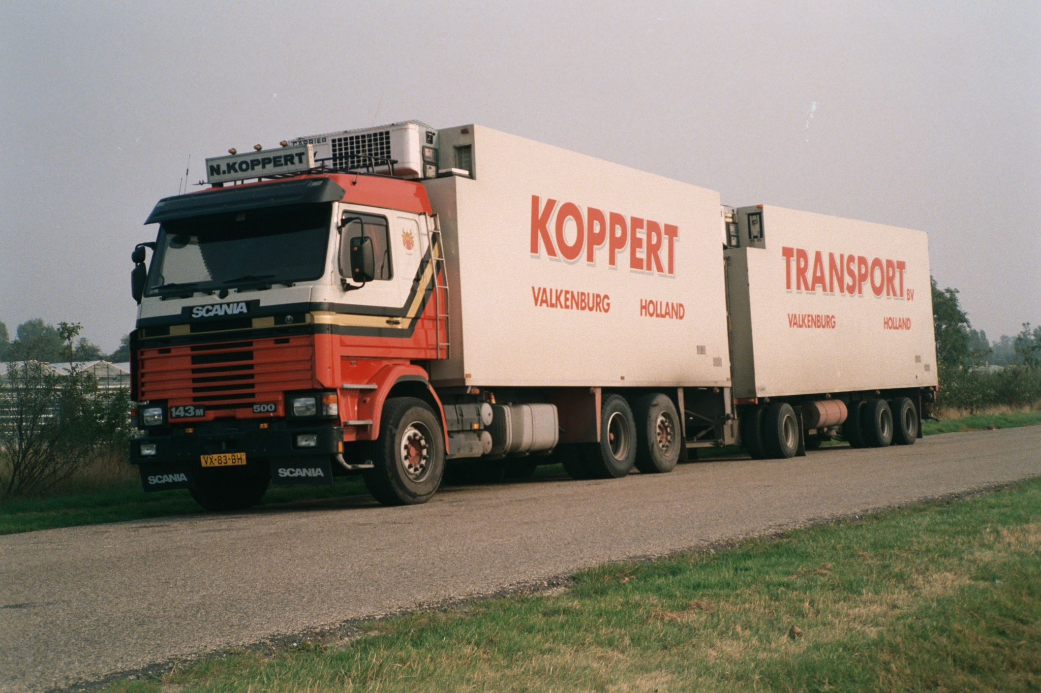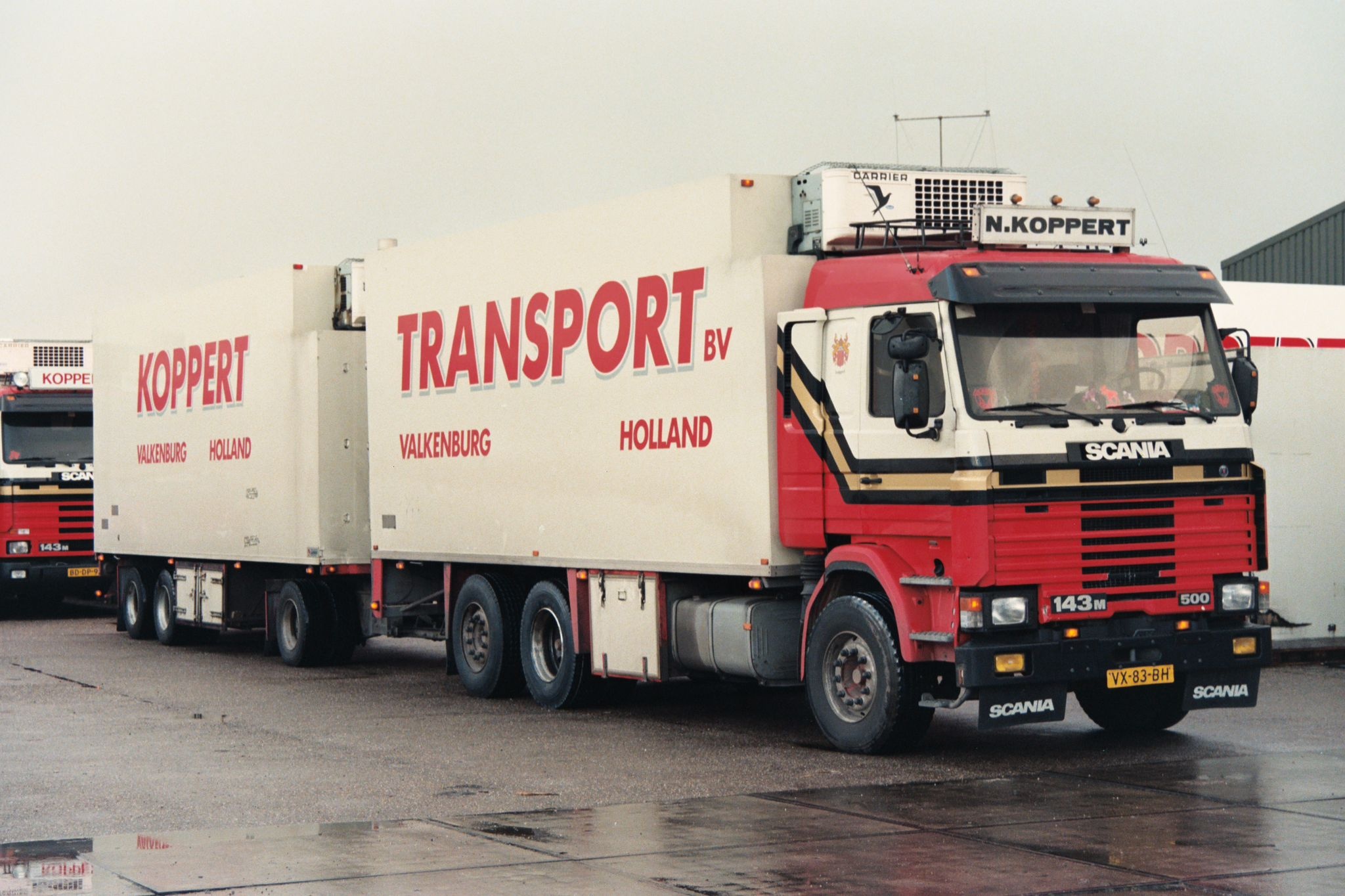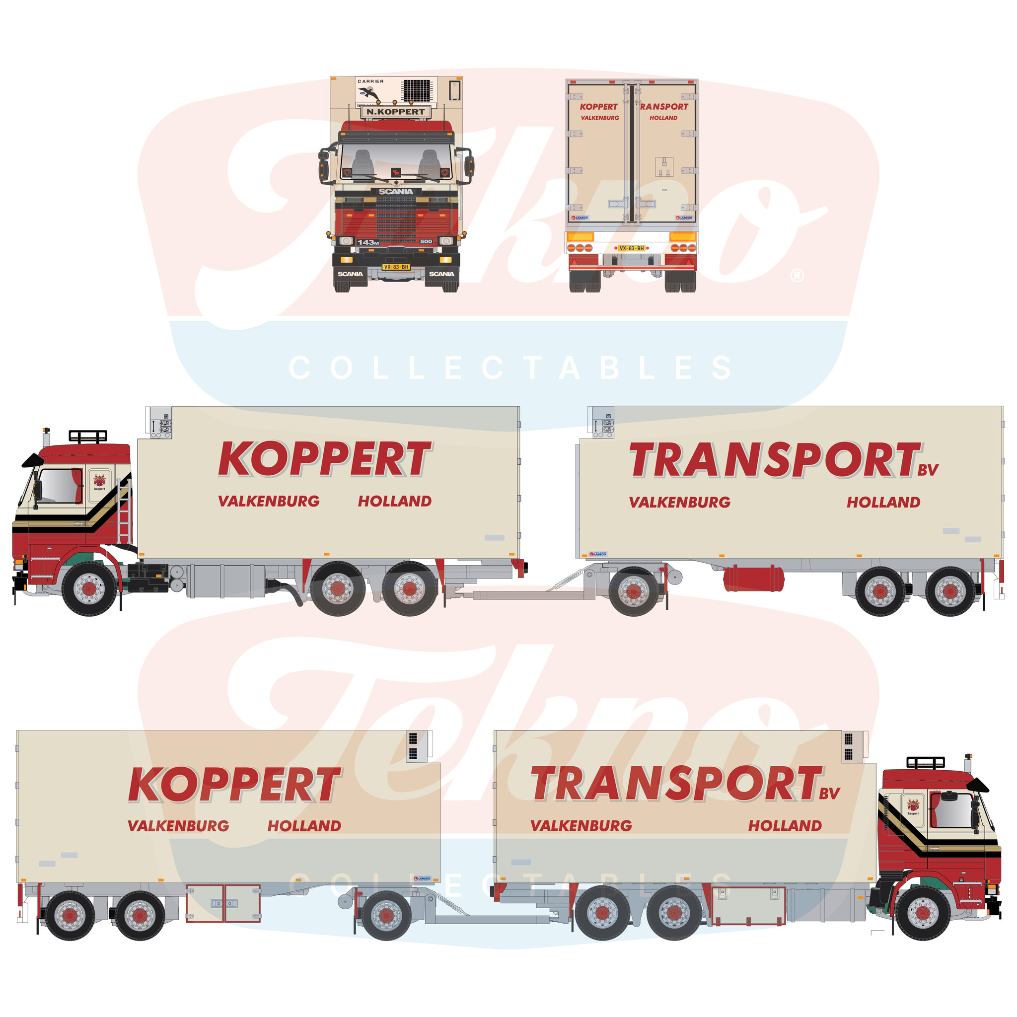 Beoordeel Tekno Scania 143M Topline motorwagen met 3-assige schamel aanhanger KOPPERT
