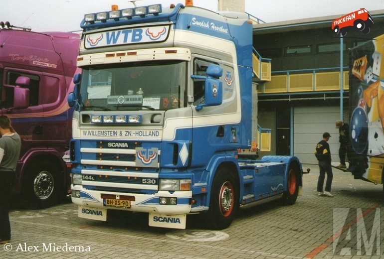 Scania 144L 530 4x2 Trekker met 3-assige schuifzeilenoplegger