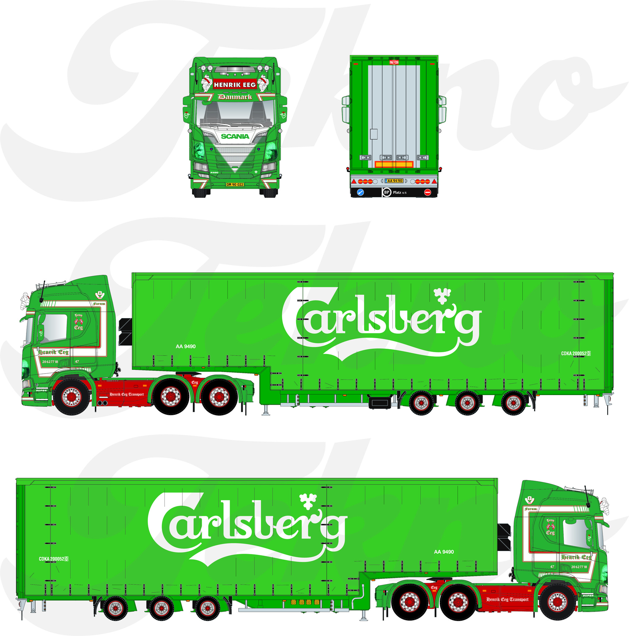 Beoordeel Tekno Scania Next Gen R590 Highline met 3-assige volume trailer HENDRIK EEG