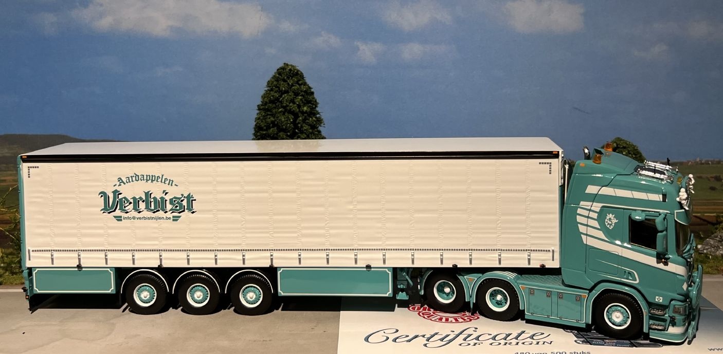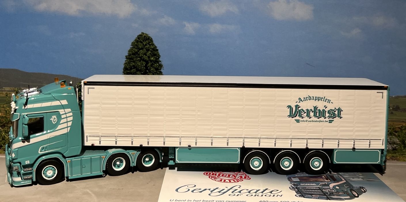 Beoordeel Tekno Scania Next Gen R650 6x2 met schuifzeilenoplegger VERBIST
