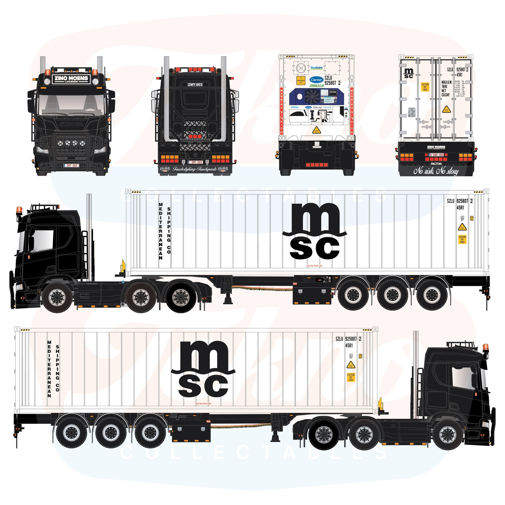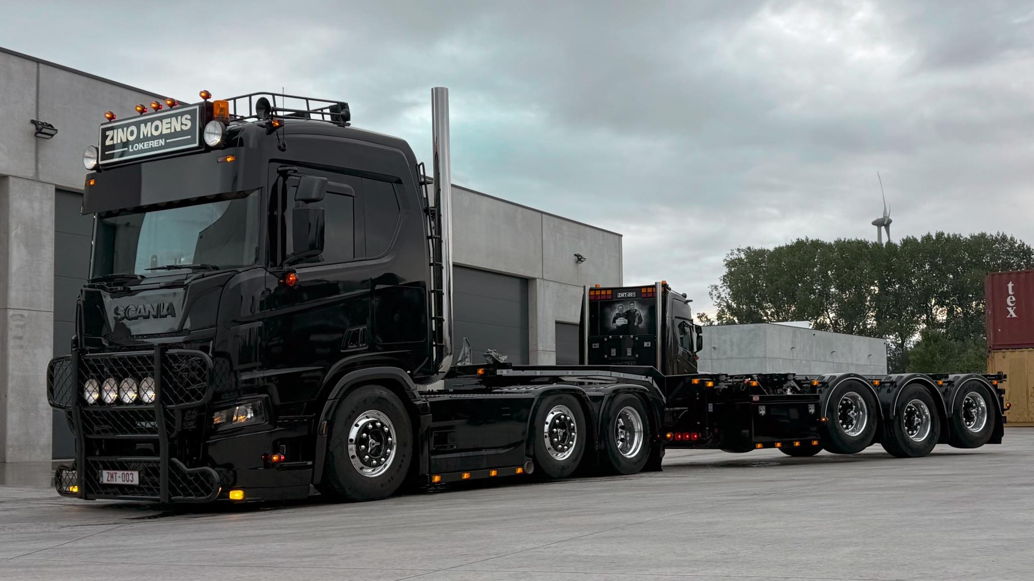 Beoordeel Tekno Scania NGR trekker met 3-assig containerchassis + container ZINO MOENS