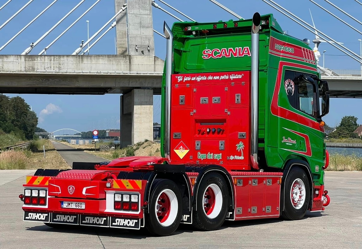 Scania NGR660 V8 6x2 met 3-assige wielkuip semi.