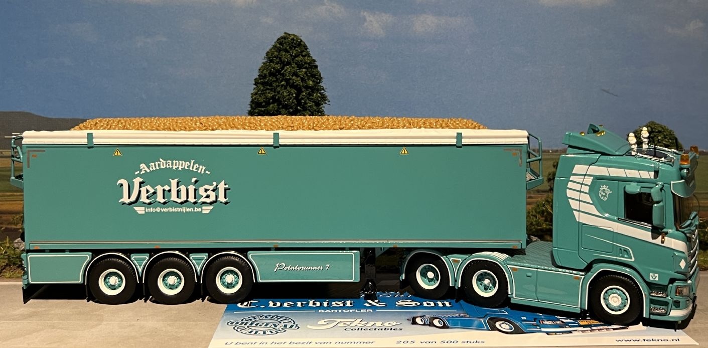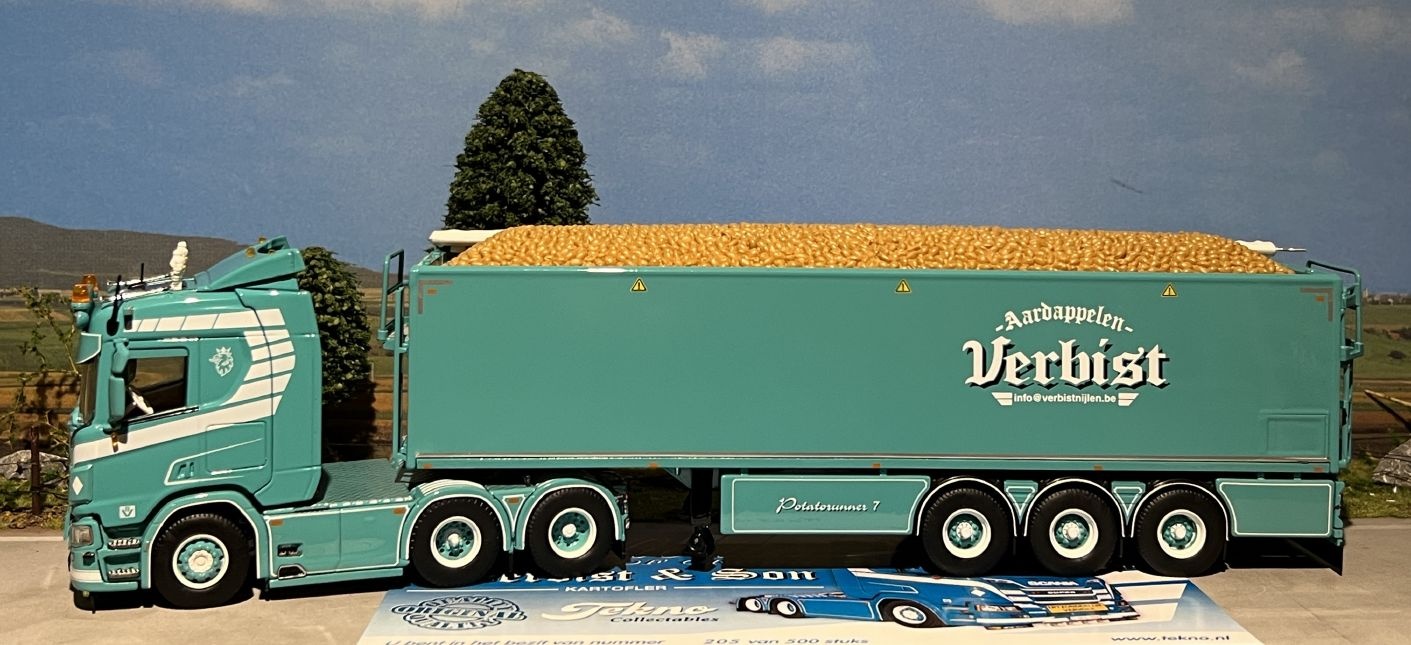Beoordeel Tekno Scania R650 Highline met aardappeloplegger + lading VERBIST