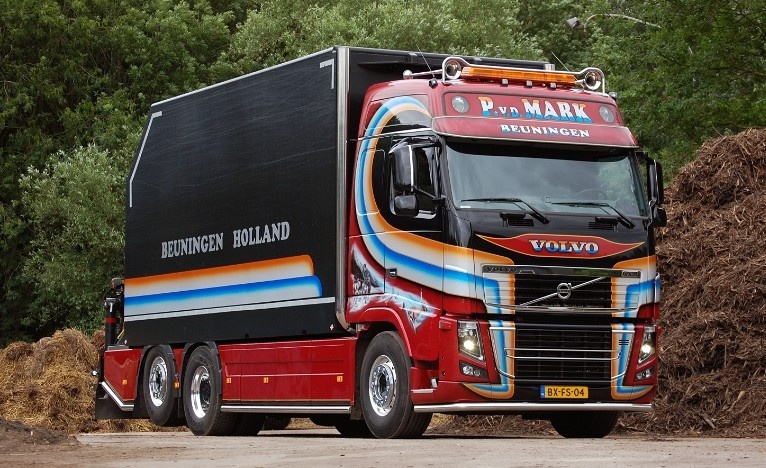 Tekno Volvo FH03 Globetrotter motor wagen met laadkraan + 3-as oplegger mestcombi PARTICK VAN DER MARK