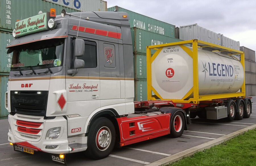 Beoordeel WSI DAF XF Space Cab 4x2 + 3-as container trailer + 30ft. bulkcontainer DE KRAKER