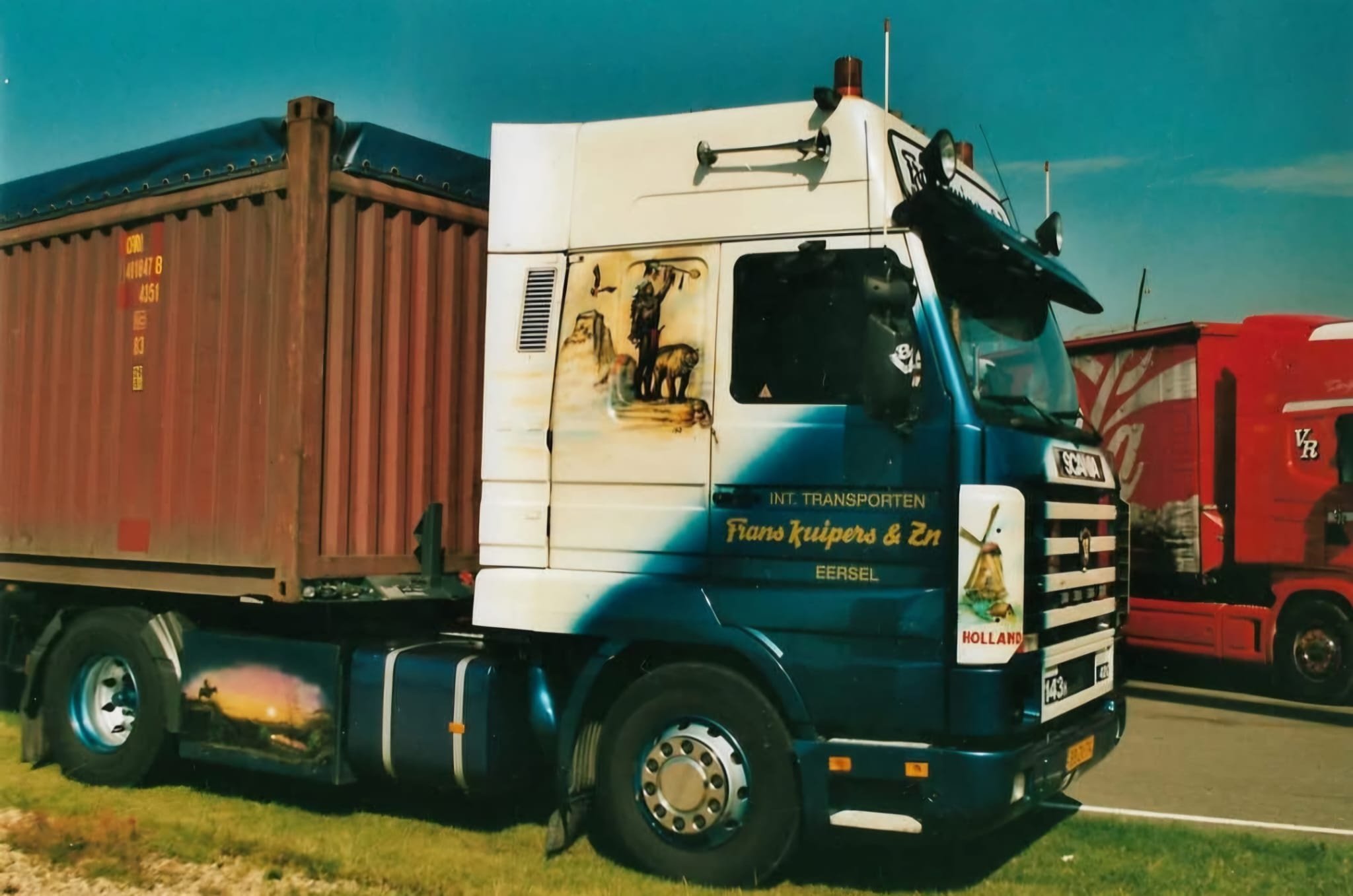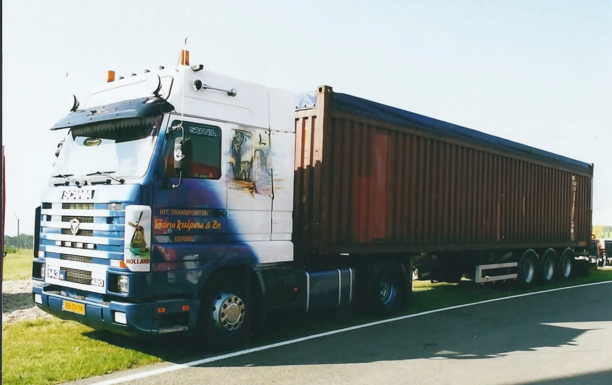 Scania 143H streamline met 3-as flexcontainer oplegger + 40ft. container
