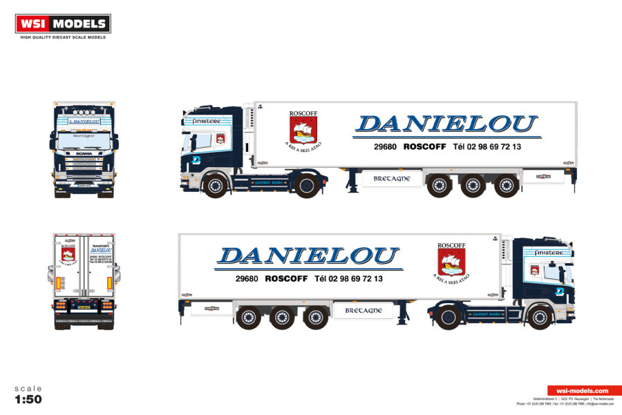 Beoordeel WSI Scania 4-serie Topline 4x2 met 3-assige koeloplegger DANIELOU