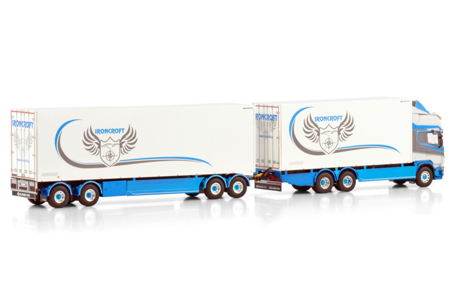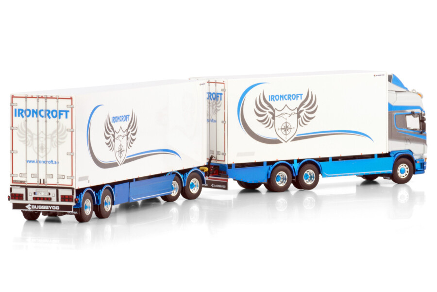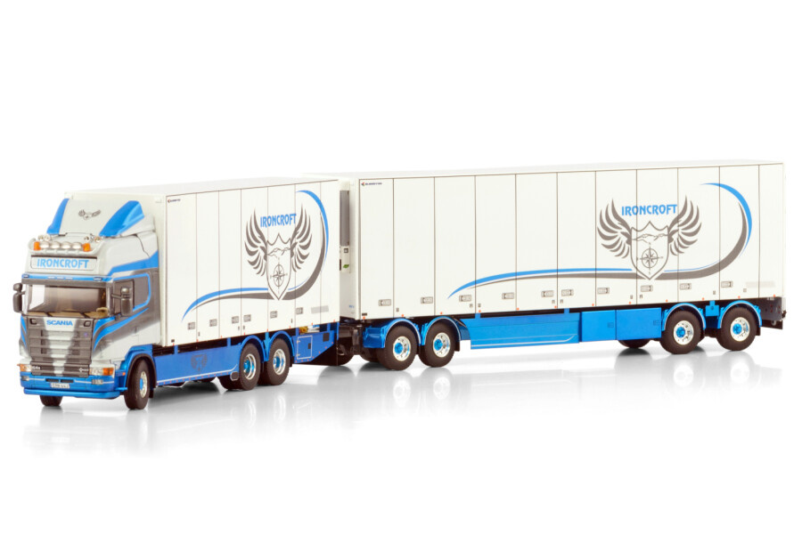 Beoordeel WSI Scania 4-serie Topline 6x2 motorwagen met 4-as koeloplegger IRONCROFT