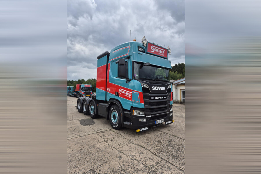 Beoordeel WSI Scania R Highline 8x4 met 7-assige mannoovr + 2-assige dolly GRUBER