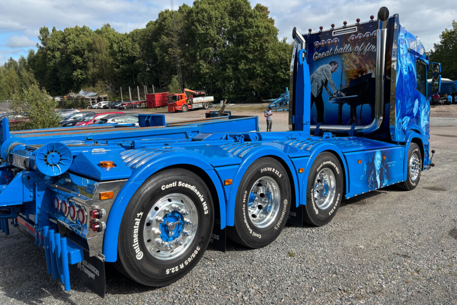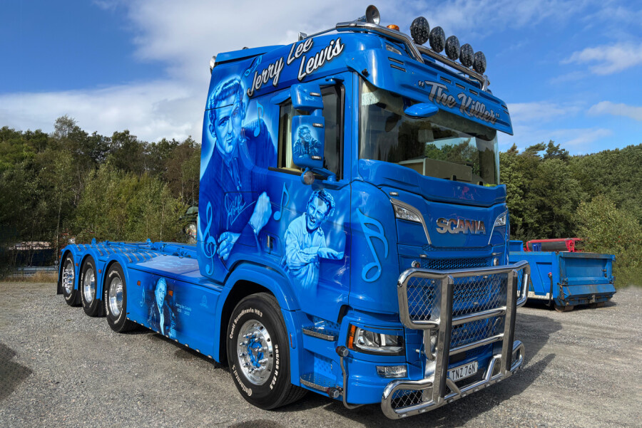 Scania R Normal 8x4 motorwagen met haakarm systeem + 15m3 container