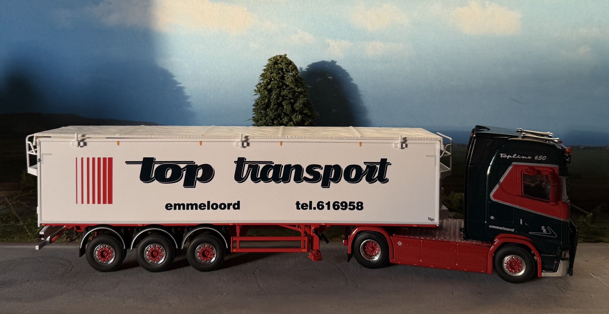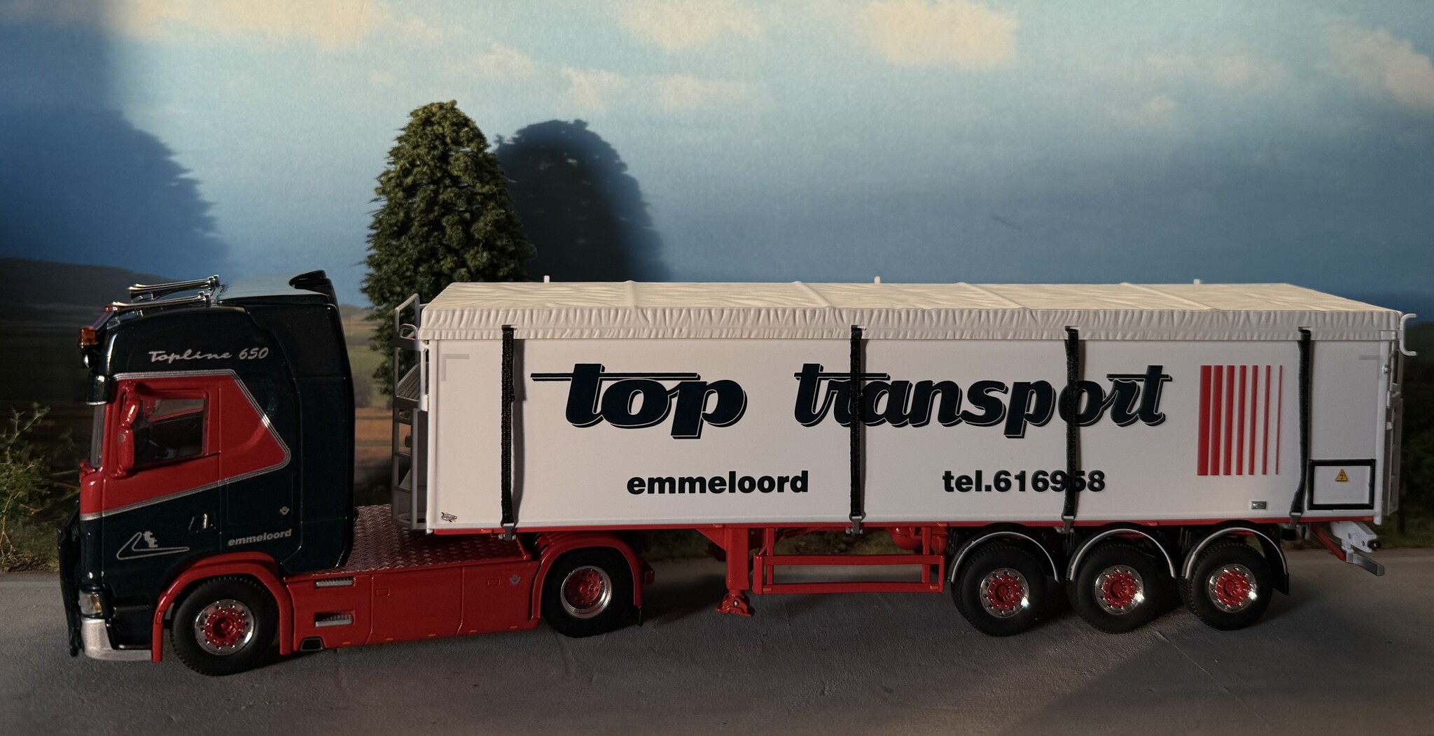 Beoordeel WSI Scania S Highline 4x2 + 3-axle belt trailer TOP TRANSPORT