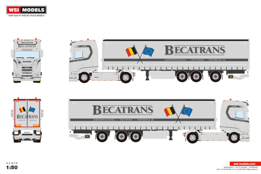 Beoordeel WSI Scania S Highline 4x2 met 3-as schuifzeilen oplegger BECATRANS