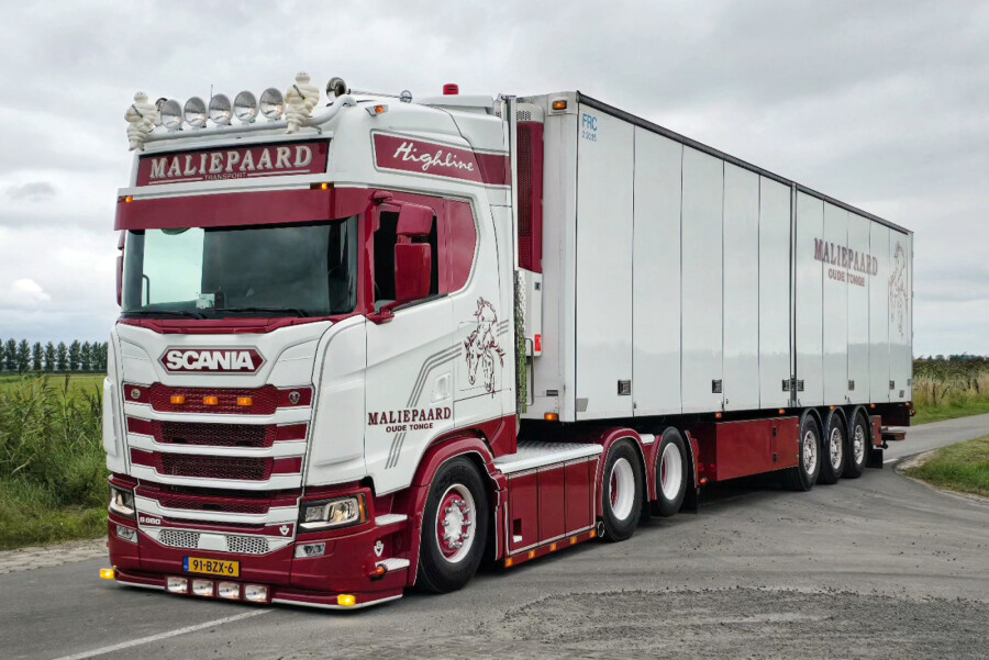 Scania S Highline 6x2 met 3-as koeloplegger