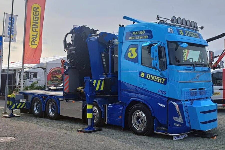 Beoordeel WSI Volvo FH5 Globetrotter Riged flatbed truck 8x4 with palfinger PK 165.002 tec 7 + jib JINERT